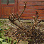 Gestern habe mit den anstehend Schnittarbeiten im Hausgarten angefangen. Der Hausgarten biete vor und hinter dem Haus unter vielem anderen 8 Lorbeerbüsche. Als Sichtschutz geduldet, aber als Schmuckwerk absolut nicht meins. Deshalbt musste schon mal der Busch vor der Hütte einen Radikalschnitt erdulden. Ich werde ihn nicht rausreißen, aber für dieses Jahr habe ich ihm alles Grün genommen. Nicht nachmachen, ist mein Geschmack.