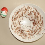 Jedes Jahr während der Fastenzeit werden bei uns an einem Sonntagnachmittag Ostereier angemalt. Seit letztem Jahr machen wir auch ein Eierhäuschen, welches dann an Ostern inmitten einer Kressewiese tronen soll. Dazu ordne ich kreisrund Watte in einem tiefen Teller und streue nach dem Anfeuchten die Kresse darüber. Für unsere Kleine ist das inzwischen eine ganz wichtige Ostertradition, kennt sie sie doch aus einem ihrer liebsten Kinderbücher. Die Kresse allerdings dürfen die Erwachsenen alleine aufessen, die ist ihr noch zu scharf.