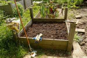 Da ich in Verzug bin, muss ich fleissig dran bleiben mit dem Säen und pflanzen. Heute waren die gestern entkrauteten Hochbeete dran. In dem kleinen Beet auf dem oberen Bild sind jetzt der vorgezogene Lauch, Lauchzwiebeln und unsere Lieblingskarotten eingezogen. In dem Beet dahinter habe ich zuerst den Mangold vom letzten Jahr entfernt und jetzt sitzen dort zusammen mit Erdbeeren 8 Fenchelsetzlinge. Fenchel ist übrigens die Lieblingsmahlzeit schlechthin der fiesen Nacktschnecken. Deshalb habe ich gleich noch Schneckenkorn verteilt. Sicherlich nicht die Ökologischte Anbauweise, aber ich habe noch keinen einzigen Fenchel erwachsen werden sehen und das muss ein Ende haben :-).