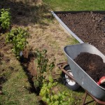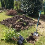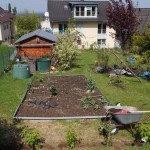 Heute kommen die Himbeeren in die Erde. Schon seit Wochen stehen die 6 Pflanzen im Garten und warten auf ei „Einbürgerung“. Erst war es viel zu trocken, dann kamen die Ostervorbereitungen und jetzt wollte ich einfach die Kälte noch abwarten. Zudem war ich mir lange unsicher an welchen Platz sie kommen sollten. Himbeeren lieben volle Sonne fast den ganzen Tag und an solchen Plätzen wird es langsam etwas eng im Hausgarten. Die Himbeeren im Kleingarten sitzen dort schon seit zwei Jahren und werden jetzt hoffentlich endlich mal Früchte tragen. Nachdem die Stelle im Hausgarten mit genug Sonne identifiziert war, musste ich erst noch das darauf gelagerte Reisig zerhäckseln. Nun ist fast alles bereit, nur der Busch am Zaun muss noch gestutzt werden. Oder soll ich ihn gleich ganz entfernen?