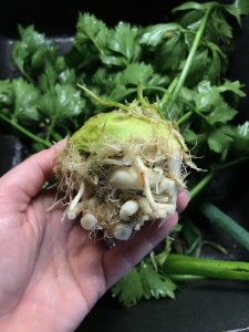 Dafür finden sich zumindest Teile des Sellerie in vielen Gemüsegerichte. Entweder Teile der Knolle in einem Gemüseeintopf oder in der berühmten Bolognese. Die Blätter finden ihren Weg immer in eine Brühe. Logisch also, dass wir jedes Jahr Sellerie anpflanzen. Einen durchschlagenden Erfolg habe ich damit allerdings noch nie erzielt. Der Knollensellerie will einfach nicht die Größe erreichen, welche man aus dem Supermarkt kennt. Er ist auf jeden Fall sehr hungrig, aber ich nehme keinen Mineralischen Dünger her. Da bedarf noch einiger weiterer Tricks, damit er auch ordentlich wächst.