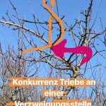 Es wird der Zweig stehen gelassen, welche am stärksten steht und andere Zweige von anderen Leitästen nicht kreuzt oder scheuert. (merkt ihr schon wie kompliziert das ist :-)?) Will ich das Baumwachstum in die Höhe allerdings bremsen, wähle ich den Schwächsten der Konkurrenztriebe aus.