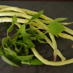 Jetzt, Ende Mai, ist es Zeit für die Schlangebohnen. Diese Bohnenart kommt aus dem Asiatischen Raum und besonders in Thailand werden sie oft in der lokalen Küche verwendet. Das Besondere an dieser Bohnenart – natürlich neben der ungewöhnlichen Länge: Erwachsene können Schlangenbohnen in kleinen Mengen roh essen. Bitte nicht Kindern geben!