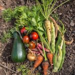Schon das Ernten des Gemüses macht richtig Laune. Heute ziehe ich drei Karotten und eine Pastinake aus dem Boden. Weiter geht es mit den verschiedensten Bohnen, eine Zucchini, Sellerie Stängel, Tomaten, eine Zwiebel. Abgeschmeckt wird mit frischem Oregano und Thymian. Da der Weißkohl dieses Jahr nichts geworden ist, kommen klein geschnittener Palmkohl und Grünkohlblätter mit in die Minestrone. Die Puffbohnen und Erbsen sind aus dem Tiefkühlschrank. All das was ich heute frisch geerntet habe, sieht man auf dem Teller. Ist das nicht ein wundervoller Anblick?