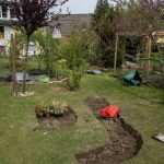 Nachdem der Weidebogen-Sitzplatz nun fertig ist, setzte ich kurzerhand den Spaten weiter oben an. Innerhalb von 3 Tagen habe ich ich die neuen Beete ausgestochen. Zwischenzeitlich war das Projekt „Neue Blumenbeete“ fast schon am kippen. Fingen doch die Kids in den beiden Löchern mit Bagger und Spaten an zu buddeln. Wir haben uns nun darauf geeinigt, dass weiter oben nochmals ein Loch entsteht. Dort können sie sich dann austoben.