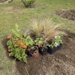 Meine gesammelten Errungenschaften aus Norfolk und dem letzten Wochenende in Edenkoben kommen jetzt schön verteilt in den Boden. Auch drei der selbst gezogenen Sonnenblumen Sorte „Teddy Bear“ kommen hier mit hinein. Die Hauptakteure folgen erst im Mai. Links sollen noch Mais und Stangenbohnen mit hinein, im rechten Beet vier Dahlien. Zusätzlich das restliche Saatgut verteilt, welches nach der Aussaat im Wiesenbeet übrig war.