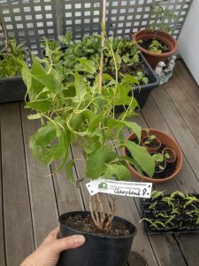 Deshalb werde ich auf der unteren Terrasse die zweite Kiwibeere in einem 50 cm Pflanztopf aufstellen. Immer noch nah genug an der männlichen Pflanze. Ich bin sehr gespannt, wie sich die Kiwibeere hier entwickelt.