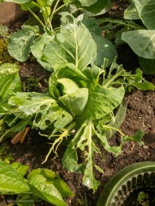Wie schon erwähnt lege ich in diesem Gartenjahr ein besonderes Augenmerk auf meine Kohlpflanzen. Doch trotz vieler Schutzmaßnahmen, wie dem Insektenschutznetz, hat sich mal wieder der Kohlweißling an meinem Kohl zu schaffen gemacht. Besonders den Spitzkohl haben die Raupen des weißen Schädling zum Fressen gerne. Klar, ist ja auch der leckerste Kohl.
