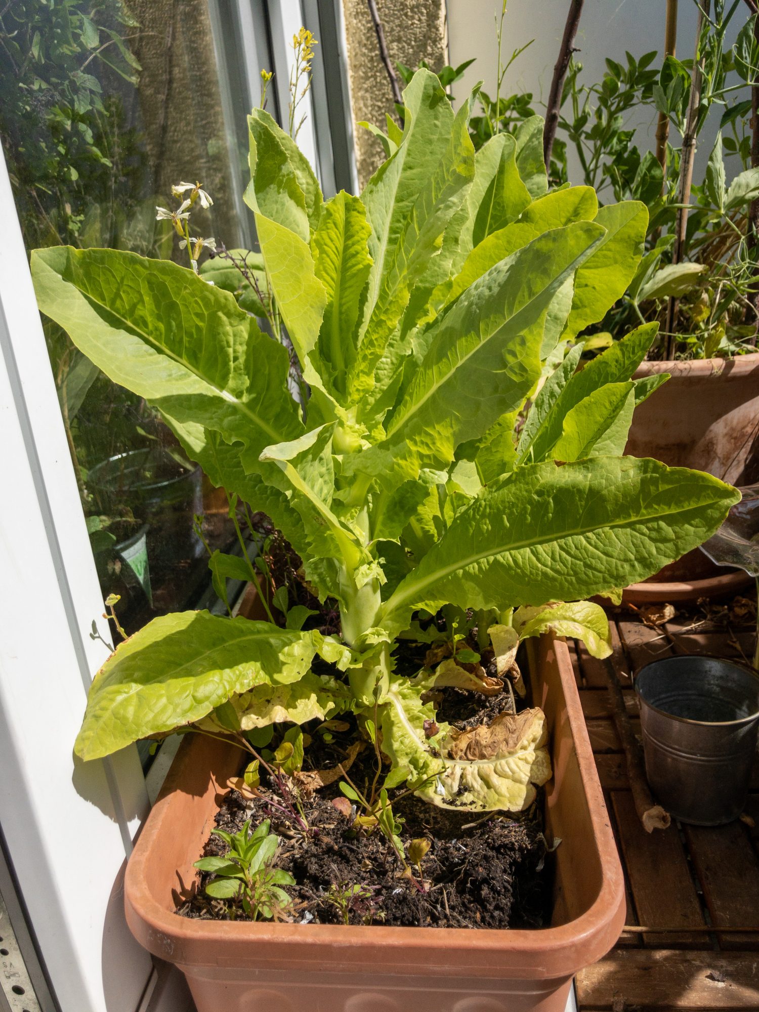 Nicht irritieren lassen, Spargelsalat sieht immer so aus, wie wenn er gerade „davon galoppiert“. Das ist sein Markenzeichen. Im zweiten Standjahr hatte ich Setzlinge, welche sich selber ausgesamt hatten. Diese waren viel kräftiger, als die von mir ausgesäten. Also auch mal eine Pflanze stehen und blühen lassen.