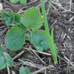 Bemerkt habe ich das Grün beim Pflanzen von Erdbeerablegern aus dem Tomatenbeet, in dem sie in diesem Jahr die Beetumrandung waren. Nächstes Jahr soll das Duo Erdbeer-Zwiebel im neuen Beet glänzen. Ein Duo, welches überraschend gut funktioniert.