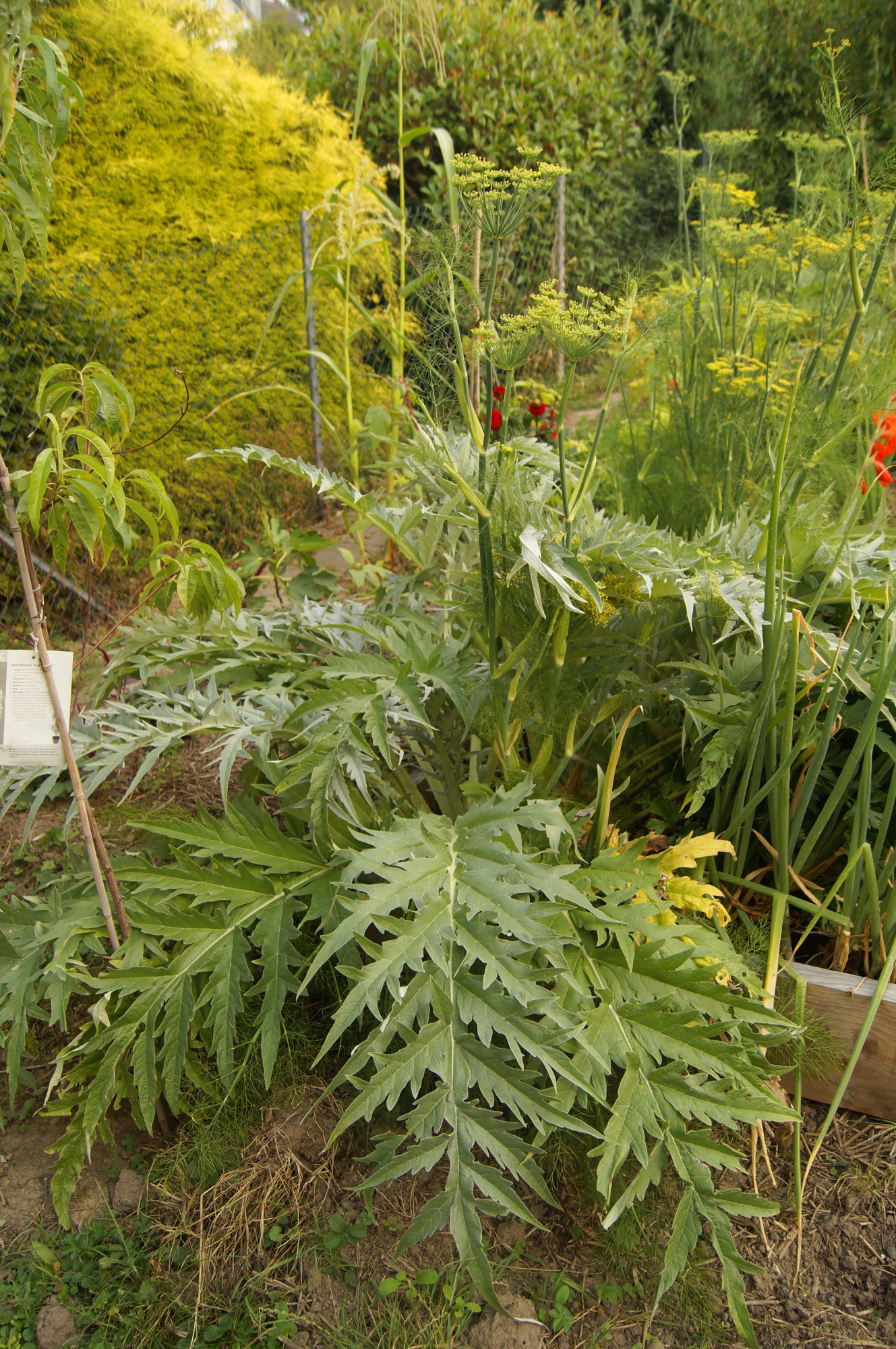 Die Mehrjährigen Nutzpflanzen in meinem Garten sind: Artischocke, Cardy, Etagenzwiebel, Winterheckenzwiebel, Rhabarber, Tobinambur, Grosné, Broccoli und Spargel. Mehrjährig sind auch viele der Kräutern. Rosmarin, Thymian, Salbei und der exotische Gewürzstrauch. Das sind alles Kräuter, welche den Winter über im Garten verbleiben. Andere Gewürzpflanzen müssen im Winter ins Haus. Diese könnte man – legt man den Begriff nicht zu eng aus – auch zur Permakultur hinzu zählen.