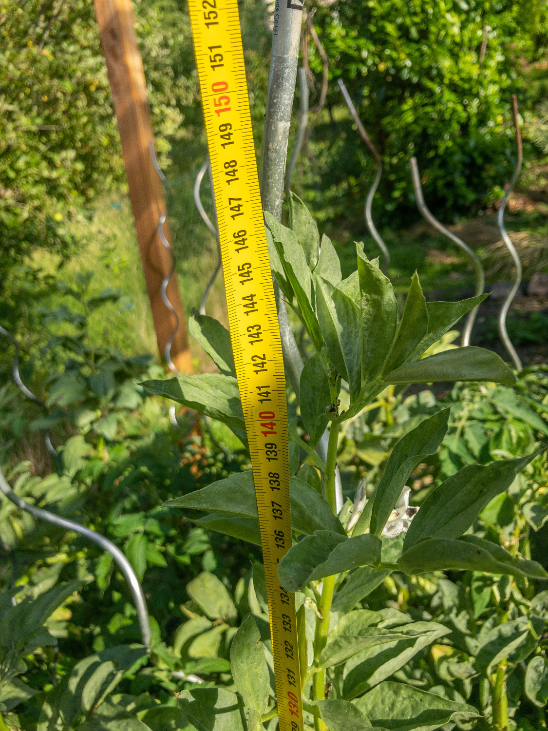 Früher habe ich übrigens die Puffbohnen im Haus vorgezogen. Davon bin ich komplett abgekommen. Die Setzlinge haben leider oft die Auspflanzung nicht so gut überstanden. Der Ertrag war mickrig. In den letzten Jahren war das größte Problem – wie so oft – die Wühlmaus. Die haben mir im normalen Gemüsebeet schon mal die Wurzel des ganzen Bestand an Longpod Pflanzen abgefressen. Was für ein Frust, wenn du siehst, wie die bereits gebildeten Schoten nicht mehr ausreifen. Daher bei Wühlmaus Befall unbedingt dagegen schützen.