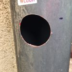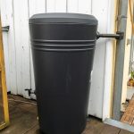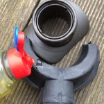 Wichtig ist, dass die Verbindung zwischen Ablaufloch im Regenfallrohr und Einflauf in der Regentonne waagrecht ist. Ist die richtige Position ermittelt – wie es in der heutigen Zeit sein muss mit Smartphone -, Schutzbrille auf und vorsichtig losbohren. Durch die Rundung des Rohres ist es nicht ganz einfach, aber mit Gefühl klappt es. Nun noch alles zusammen stecken – dafür habe ich noch einmal 30 Minuten benötigt – und schon ist die Regentonne angeschlossen.