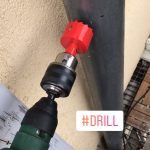 … dann beginnt die eigentliche Herausforderung. Die Verbindung zum Regenfallrohr muss extra erworben werden. Die „Regensammler“ – wie sie auch bezeichnet werden – gibt es von verschiedenen Fachhändlern. Bei der Auswahl des Regensammler muss auch der Durchmesser des Regenfallrohres berücksichtigt werden. In dem von mir verwendeten Regensammler Set ist sogar ein Loch Bohraufsatz für Metall beigelegt. Schon die erste kleine Hürde: Wie bekomme ich diesen Aufsatz auf den Bohrer? OK, die Schlagfunktion habe ich ausgeschaltet.