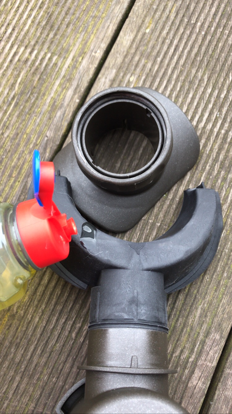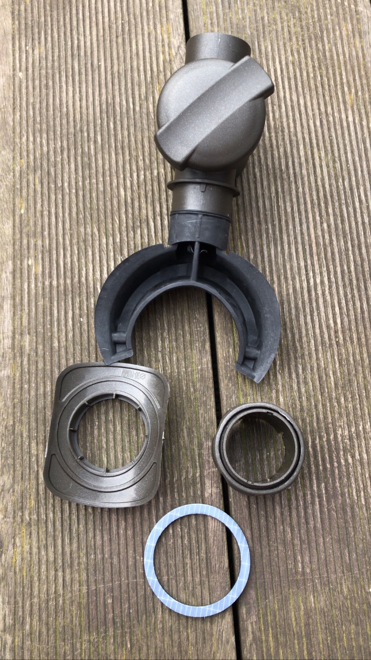 Wichtig ist, dass die Verbindung zwischen Ablaufloch im Regenfallrohr und Einflauf in der Regentonne waagrecht ist. Ist die richtige Position ermittelt – wie es in der heutigen Zeit sein muss mit Smartphone -, Schutzbrille auf und vorsichtig losbohren. Durch die Rundung des Rohres ist es nicht ganz einfach, aber mit Gefühl klappt es. Nun noch alles zusammen stecken – dafür habe ich noch einmal 30 Minuten benötigt – und schon ist die Regentonne angeschlossen.