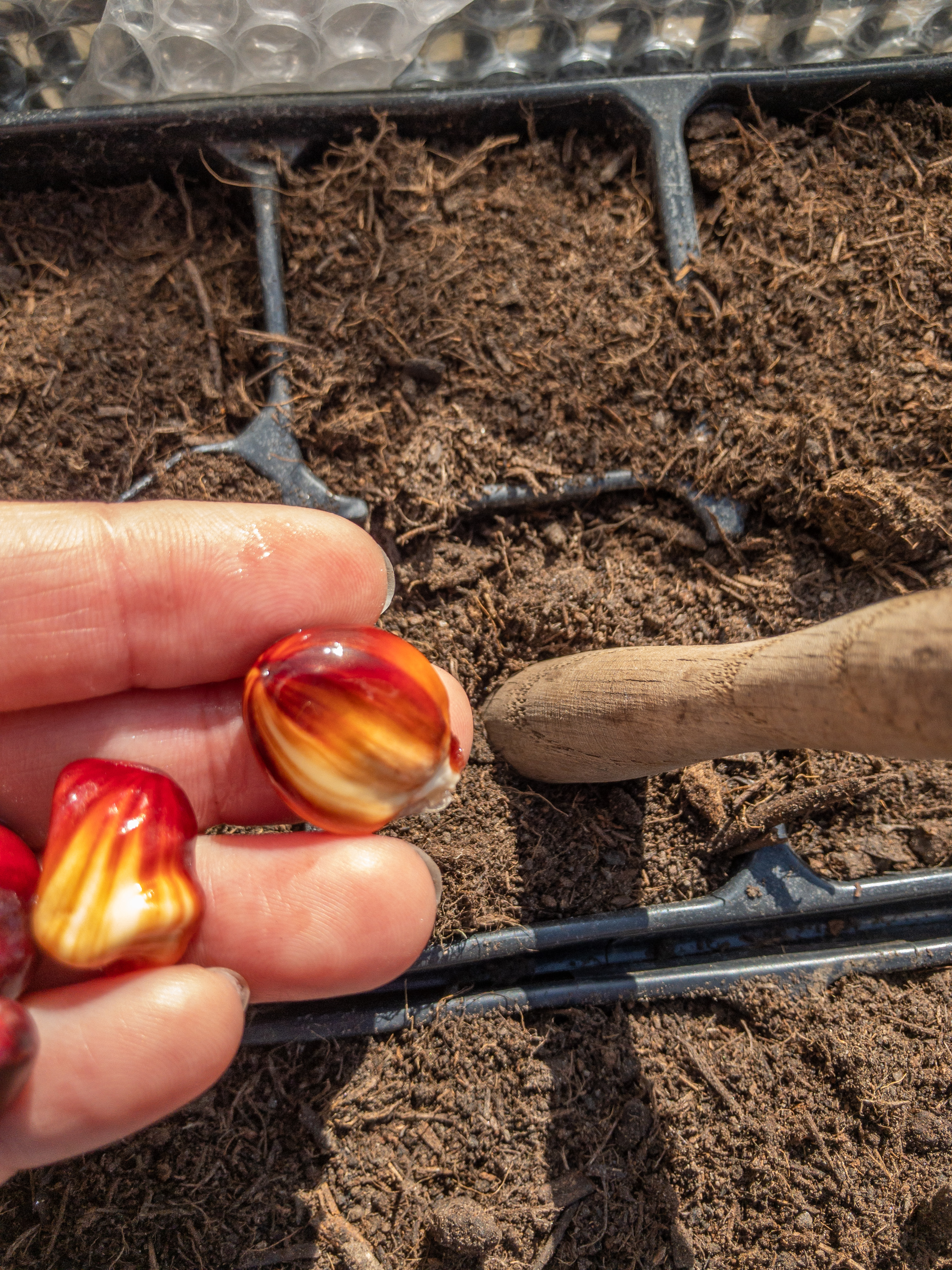 Es ist wieder soweit, der Mais kommt in die Erde. Wie gehabt in Anzuchtschalen, da die Mäuseschar im Garten jedes einzelne Korn findet. Auch braucht gerade der hochwachsende Cancha und Maiz einen Wachstumsvorsprung in unseren Breitengraden, damit die Maiskörner auch reif werden.