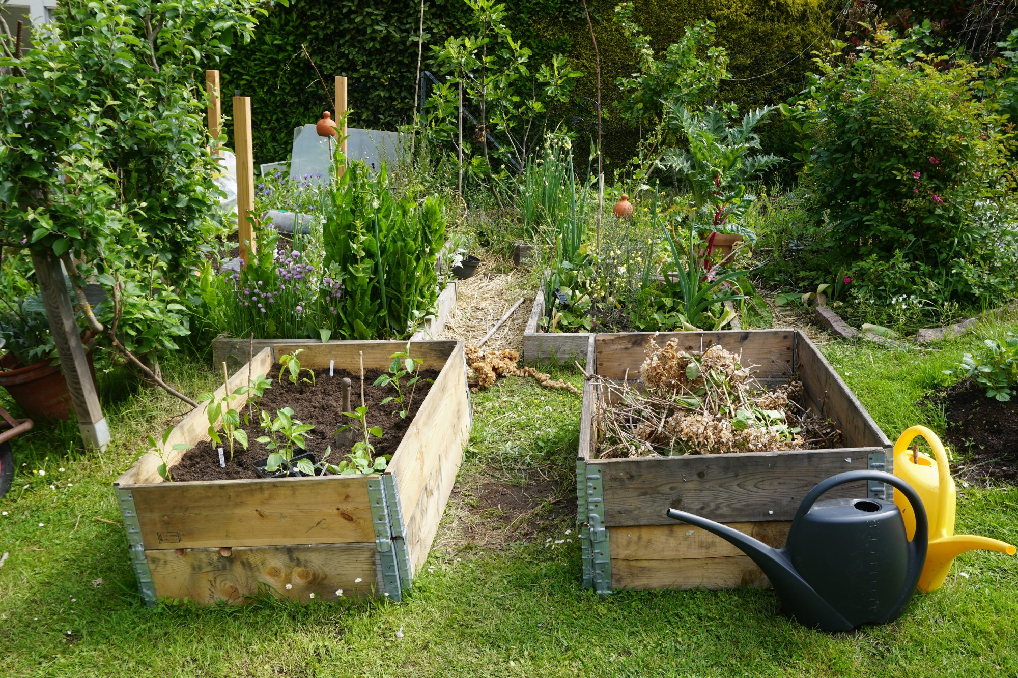 Die Hochbeete sind jetzt komplett bepflanzt. Aber ich bin noch nicht fertig, es stehen immer noch etliche Pflanzen herum. Was mache ich bloß?