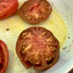 Endlich werden die Tomaten reif. Die ersten großen Tomaten der Sorte „Barred Boar“ sind geerntet. Daraus haben wir gleich gebackenen Tomaten zum Englischen Frühstück gemacht. Abends dann noch Bruscetta mit Knoblauch und einem gutem Olivenöl. Ja, so lässst es sich gut leben.