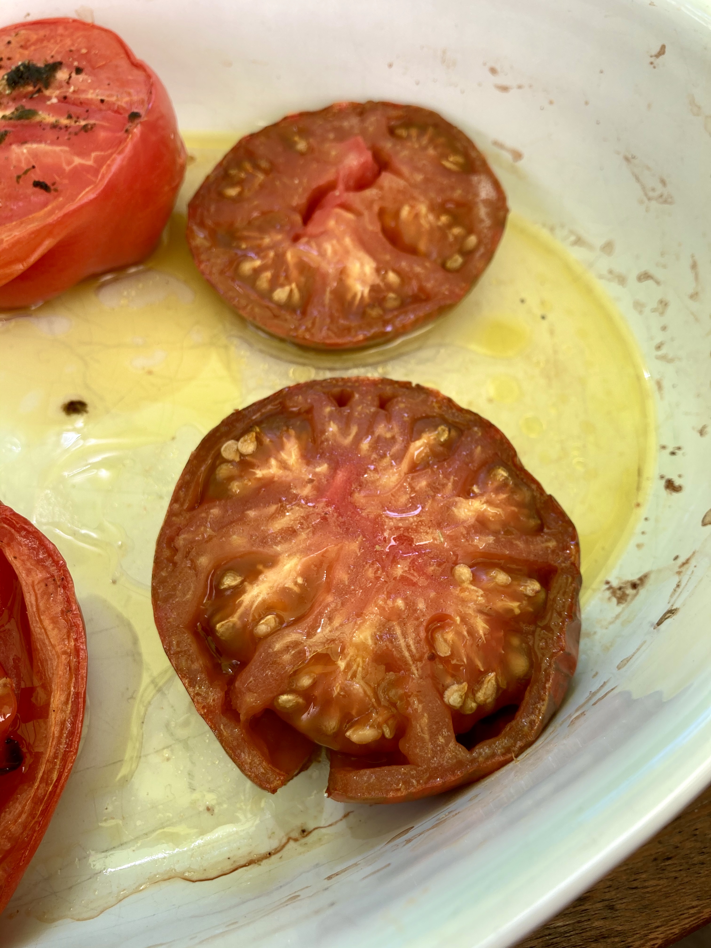 Endlich werden die Tomaten reif. Die ersten großen Tomaten der Sorte „Barred Boar“ sind geerntet. Daraus haben wir gleich gebackenen Tomaten zum Englischen Frühstück gemacht. Abends dann noch Bruscetta mit Knoblauch und einem gutem Olivenöl. Ja, so lässst es sich gut leben.
