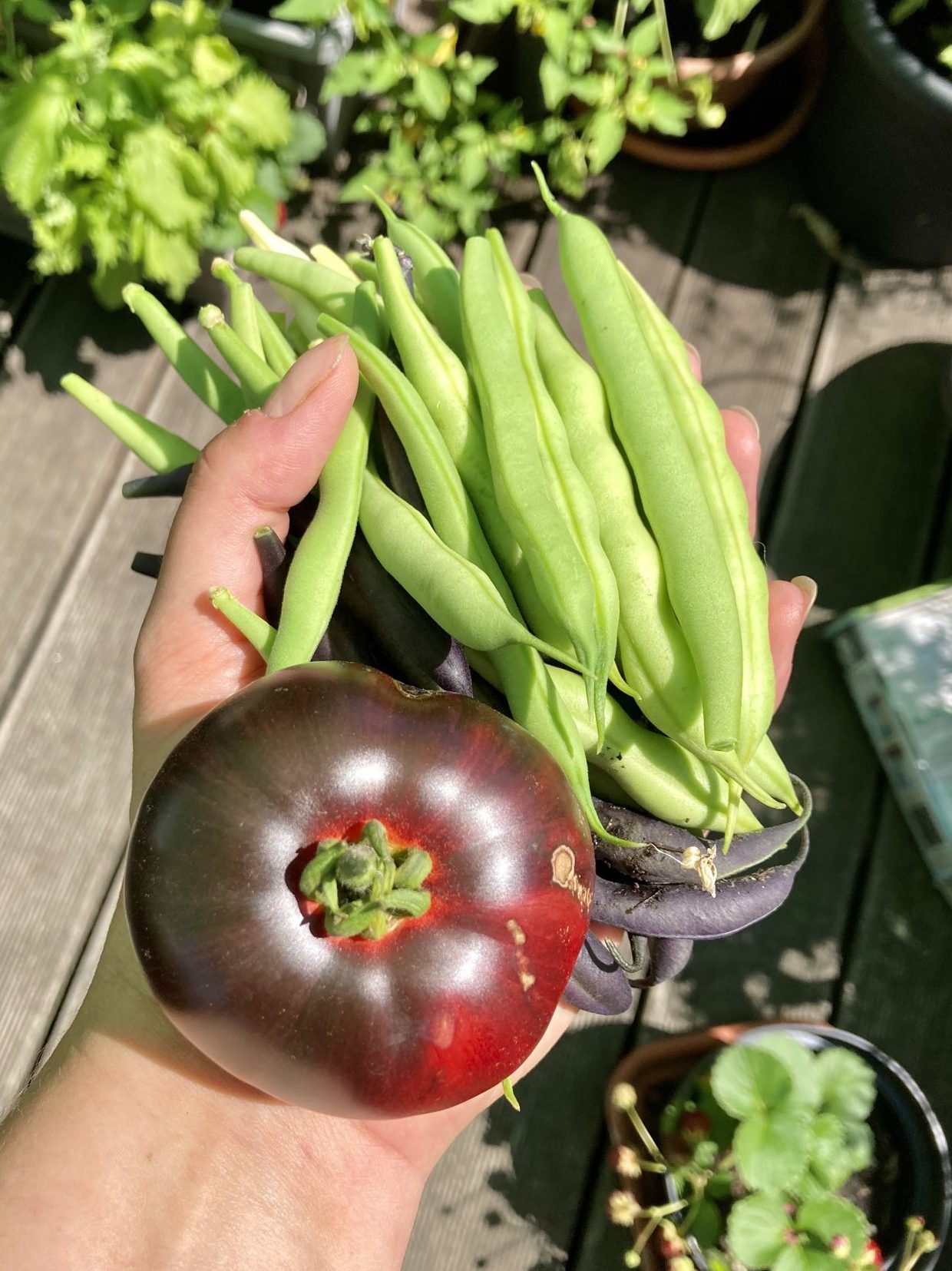 Beim gießen der Tomatenstöcke zähle ich schon fleißig die großen Tomaten. Ich bin gespannt, wie groß meine Ochsenherz Tomate für die „Tomatenchallenge“ wird. Was muss ich noch machen, damit alles weiterhin gut wächst?