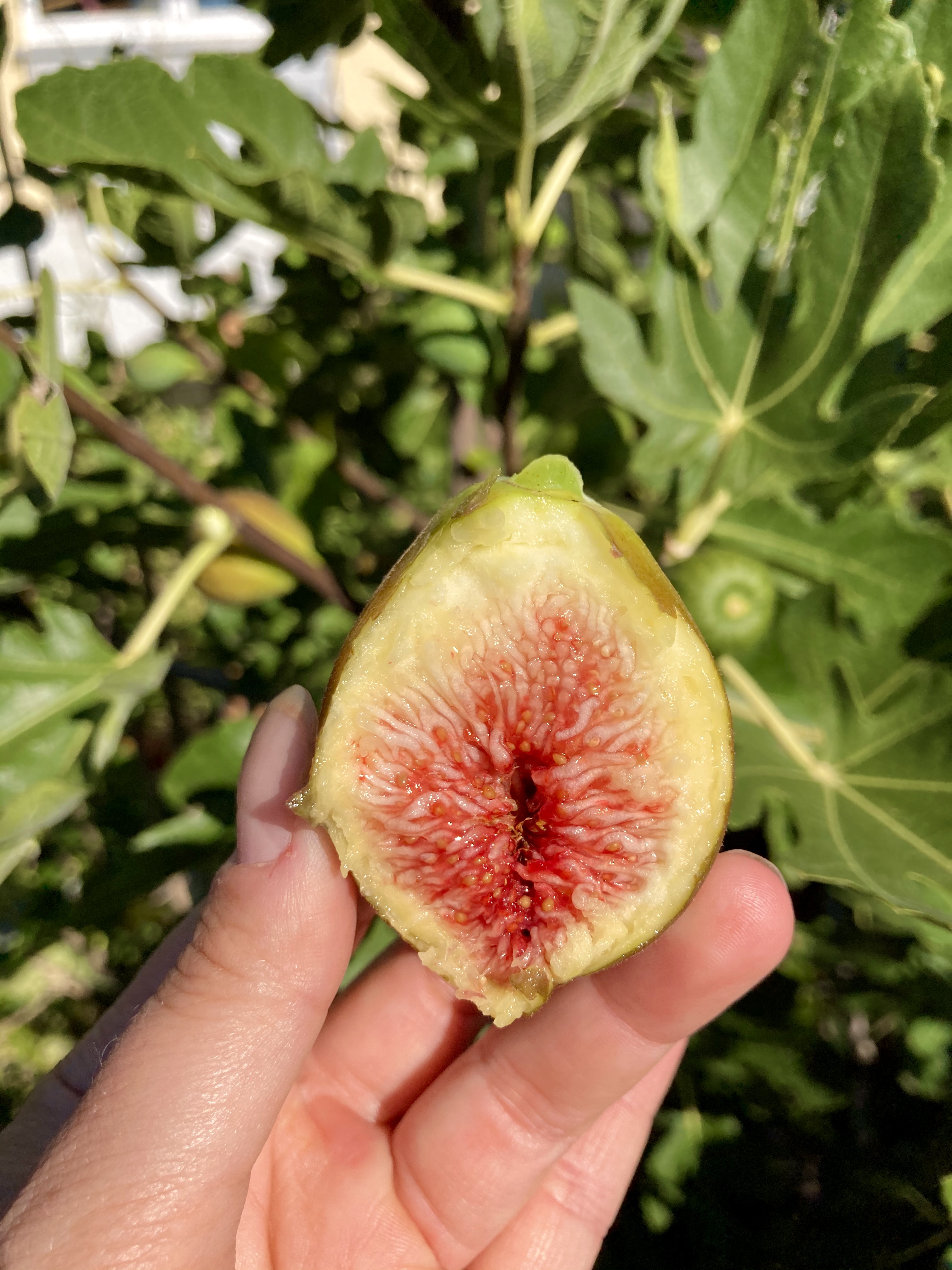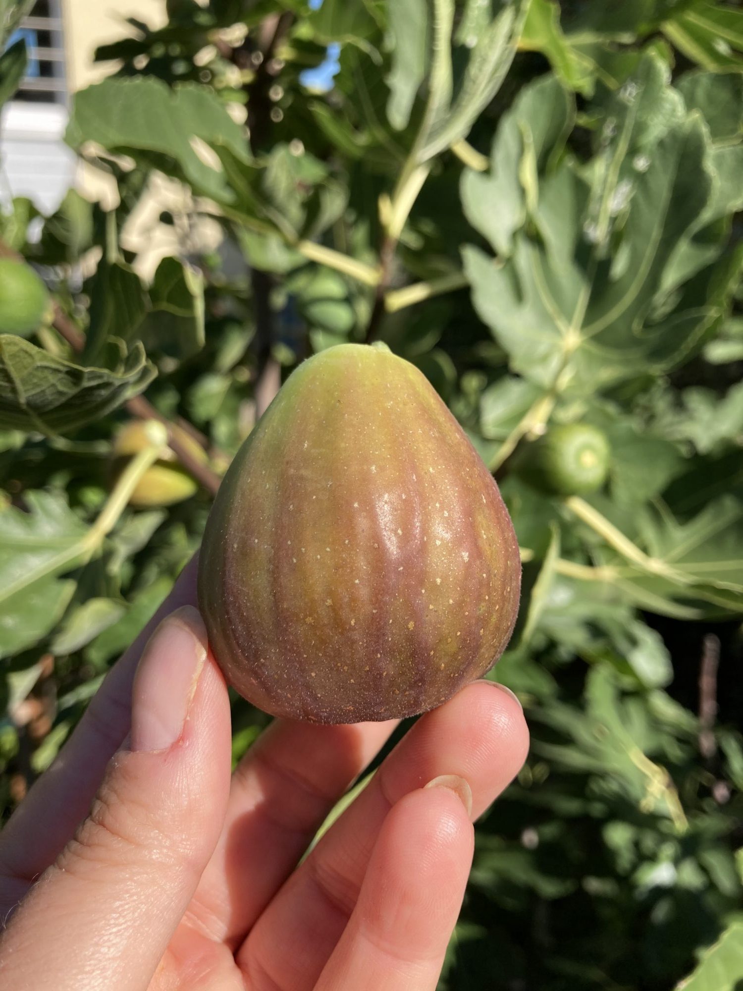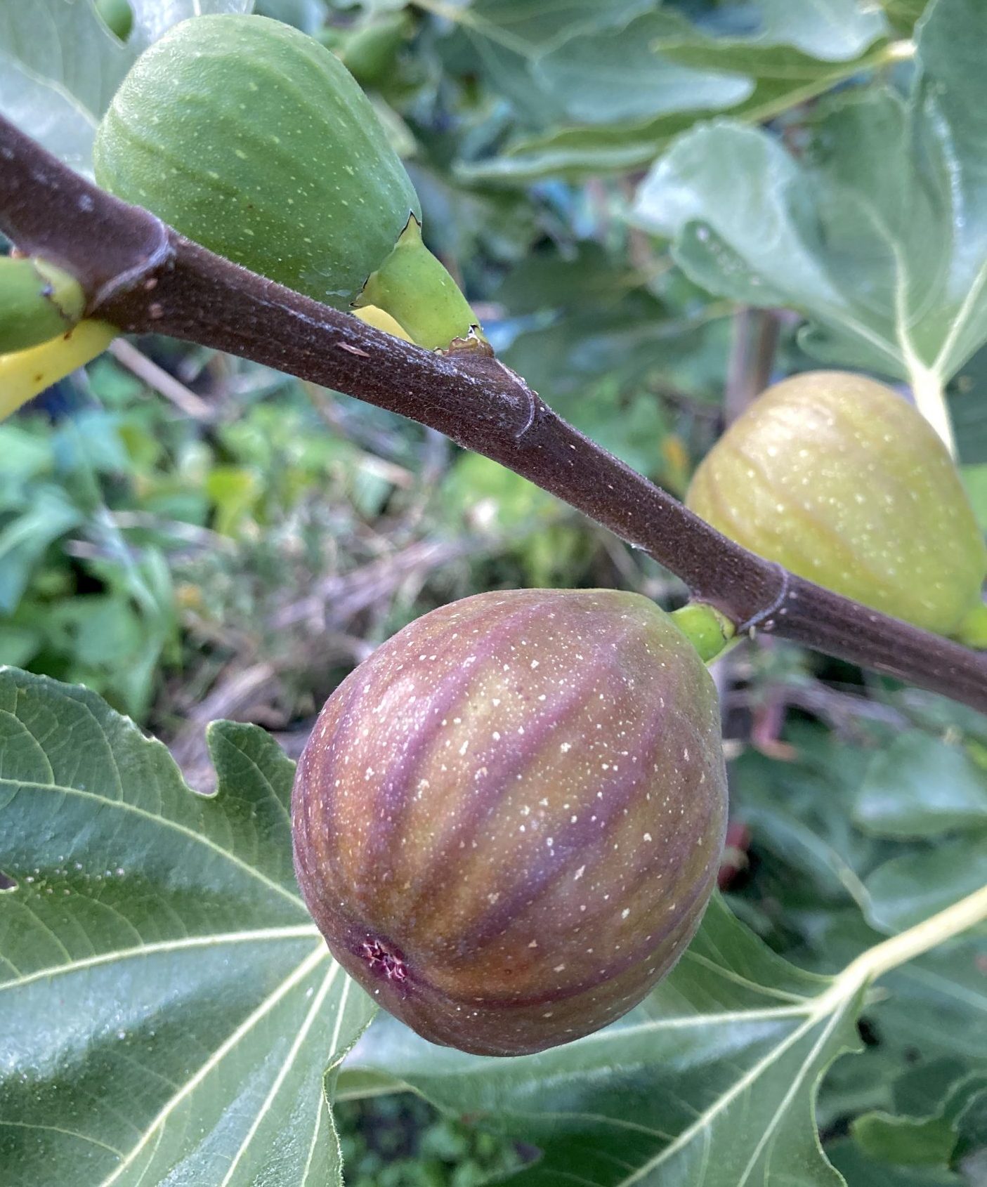 Noch eine kleine Anekdote am Rande. Vor zwei Jahren zeigte sich nur zwei Meter entfernt aus einer formals toten Wurzel auf einmal Feigenblätter. Totgesagte leben wohl länger. Es stellte sich heraus, dass der Vorbesitzer in der warmen Ecke ebenfalls einen Feigenbaum gepflanzt hatte.