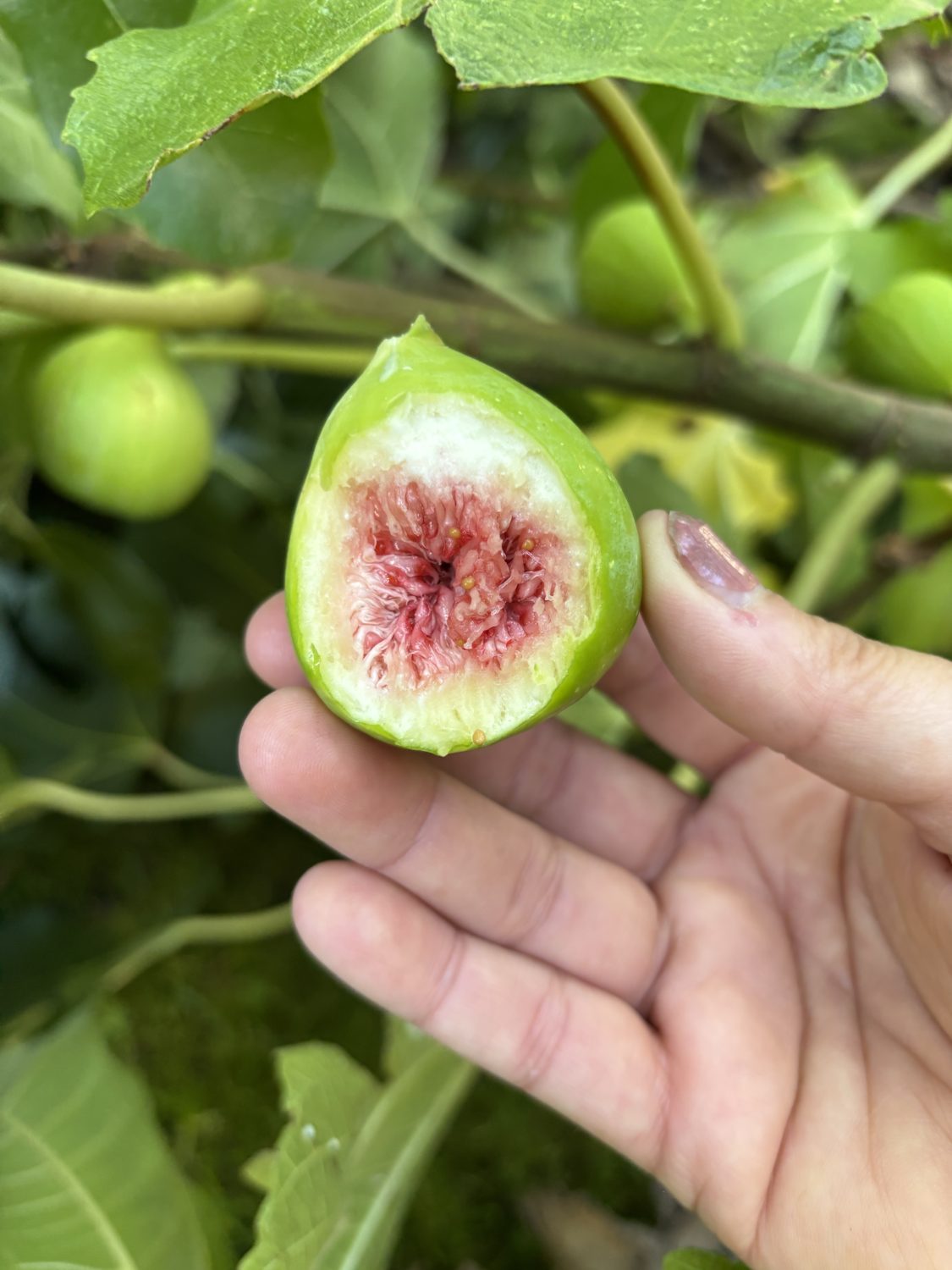 Nachdem sich endlich die große Hitze verabschiedet hat und mit einigen Wassergaben, gibt der Feigenbaum richtig Gas. Die sanft purpurne Färbung zeigt die erste Frucht ist reif. Bisher hatten wir nur genug Feigen für unsere geliebten Ziegenkäse Sandwiches mit Zwiebelmarmelade und Feigen. Rezept findet ihr hier: „Überbackener Ziegenkäse mit Zwiebelmarmelade“