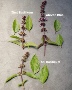 Mehrjährig ist nur der African Blue. Den einen Stock besitze ich jetzt seit 3 Jahren. Doch selbst der verliert im Winter alle Blätter. Mir deshalb grünen Basilikum in Plastiktöpfchen kaufen – das will ich nicht. Um den Basilikum Geschmack zu konservieren habe ich vor 10 Jahren begonnen die Blütenstände des stark aromatischen „African Blue“ zu trocknen. Getrockneter Basilikum ist eher ein Unding, verliert er beim Trocknen doch fast gänzlich sein Aroma. Die Blütenstände dieser Sorte interessanterweise nicht. Vielleicht, weil dieser Teil der Pflanze leicht verholzt. Ist aber nur Spekulation.