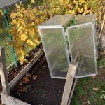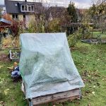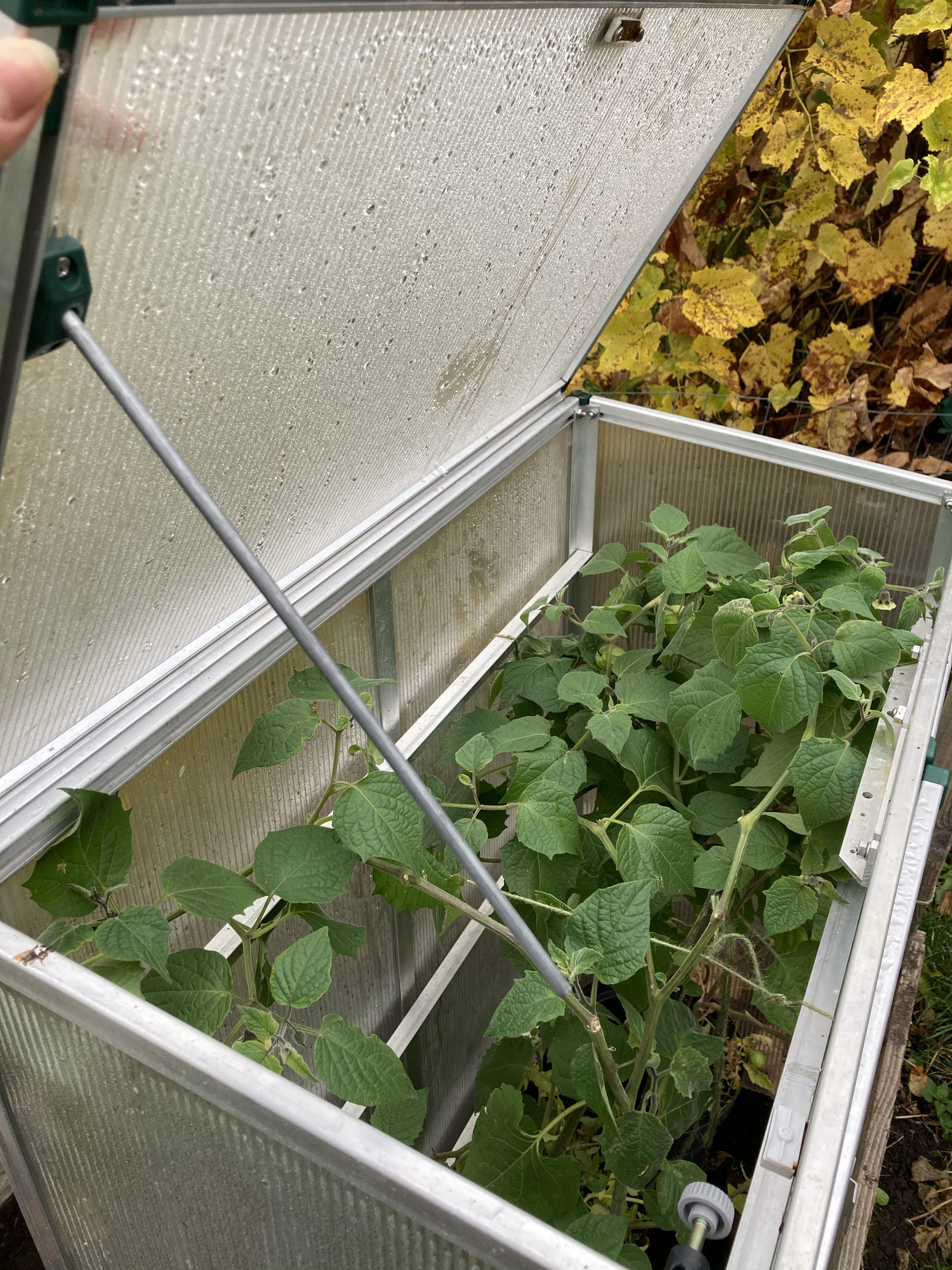 Wenigstens ist das Wetter hier bei uns im November relativ mild. Wir hatten noch keine Nacht kühler als 5°C. Das feuchte, nicht zu kühle Wetter, lässt die Andenbeeren fleißig kleine, grüne Ballons produzieren. Nur reif, das werden sie ohne Schutz wohl nicht mehr. Deshalb erhalten die größten Büsche in zwei Hochbeeten dieses Jahr einen Frostschutz. In Beet eins habe ich einfach den kleinen Gewächshausschrank über die Pflanzen gewuppt. Ich kann zwar die Türen nicht so einfach öffnen. Aber von oben habe ich Zugriff auf die Früchtchen. Habe auch noch ein paar der Blüten mit dem Pinsel bestäubt. Mal sehen, wie viele, reife Andenbeeren ich ernten kann.