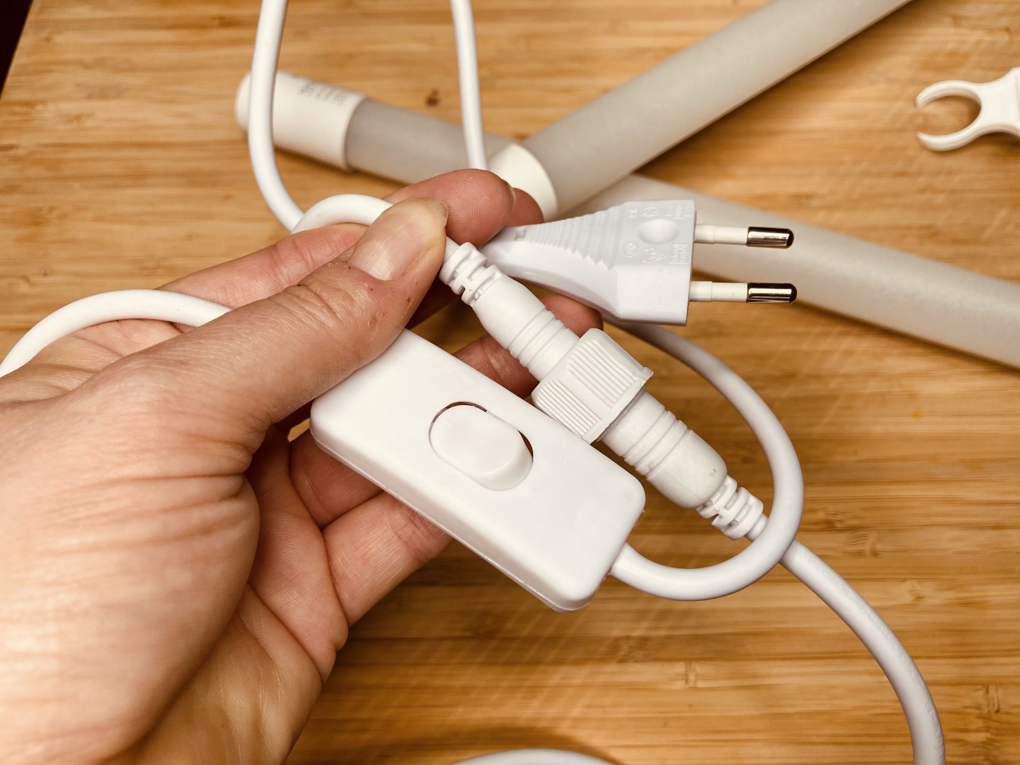 Die Klemmen für die Röhren und das passende Stromkabel habe ich zusammen mit den Röhren gekauft. In 10 Minuten ist alles zusammen geschraubt. Vollkommen ausreichend für die Blumenkohl Keimlinge. Die kommen jetzt in den Genuss einer Lichtdusche in der kühlen Waschküche. Nur die Schnur-Aufhängung werde ich austauschen, sobald die Baumärkte endlich wieder auf machen (Text stammt au dem Corona Jahr 2021, die LED Leuchtröhren gibt es immer noch 2026).