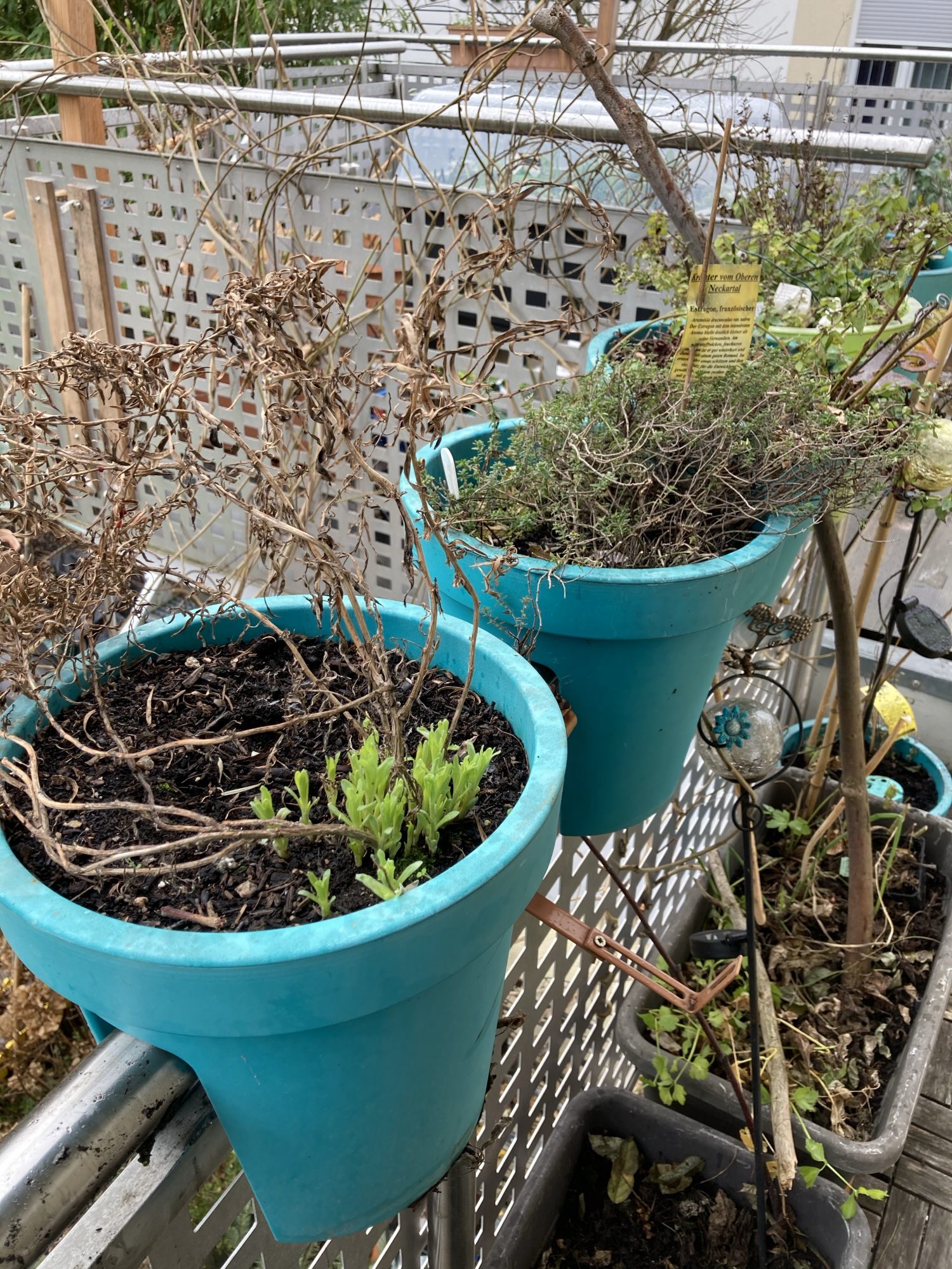 Jetzt im Januar sieht es ein wenig traurig aus in den Kräutertöpfchen. Doch der Schein trügt, hier herrscht sehr wohl auch im Winter eine große Vielfalt.