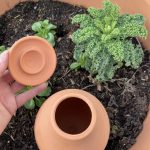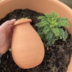 Ganz besonders stolz bin ich in diesem Jahr auf meine neueste Errungenschaft: Kleine Ollas, unglasierte Tongefäße, welche bis zum Hals in die Erde eingegraben werden. Diese Größe passt hervorragend in die Pflanzkübel und Container.Sie geben, befüllt mit Wasser, im Sommer kontinuierlich Flüssigkeit in die umgebende Erde ab. Nicht zuviel und nicht zu wenig. Genau das richtige für Gurken, Kürbis und Tomaten. So können die Trockenschäden im Balkongarten endlich vermieden werden. Die Tontüllen haben den gleichen Effekt, können aber immer nur eine Pflanze versorgen.