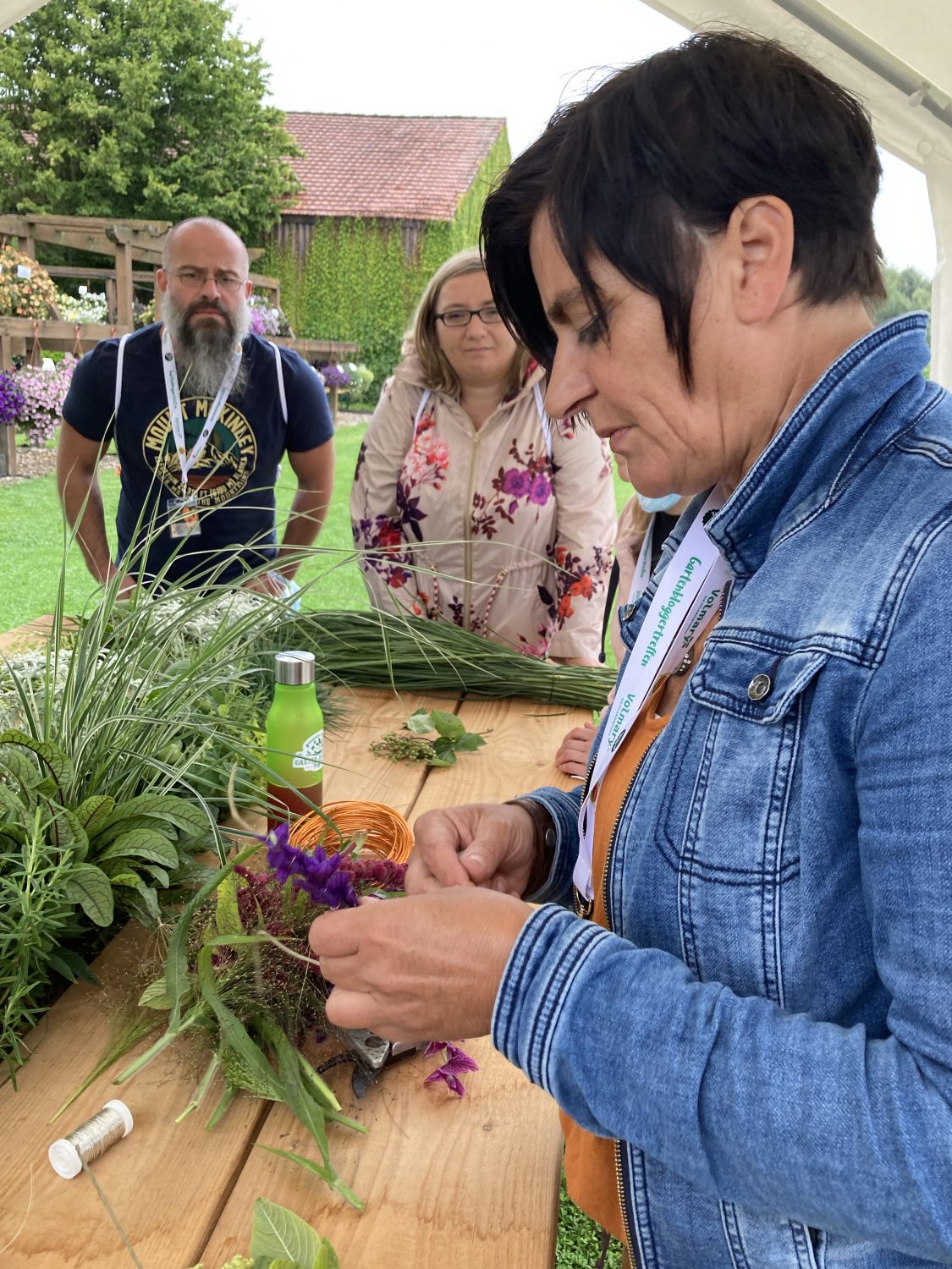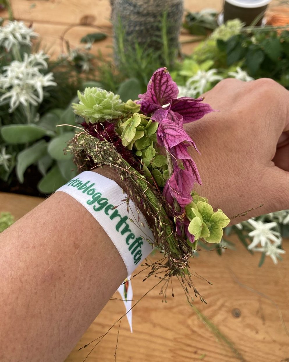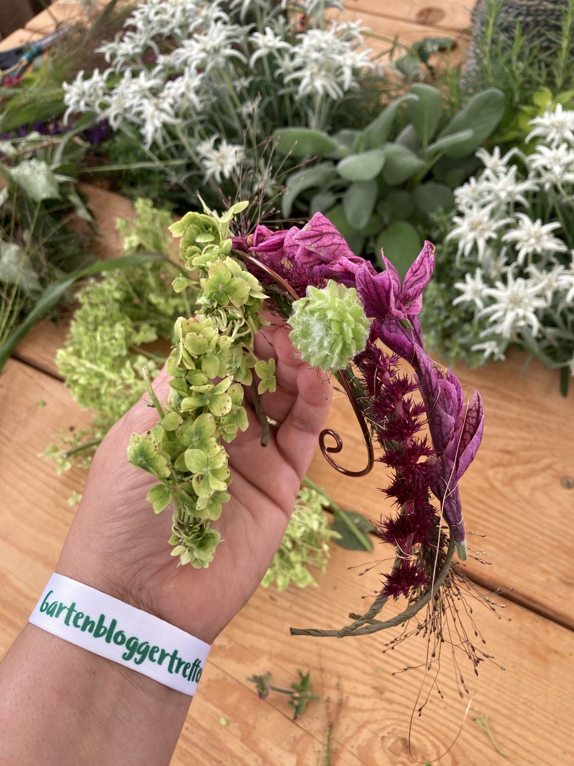 Auf dem Bloggertreffen werden auch immer verschiedene Workshops angeboten. Ich habe mich diesmal auf die beiden dekorativen Workshops konzentriert. Das Gestalten von Blumenschmuck für Hals und Arme hat sehr viel Spaß gemacht.