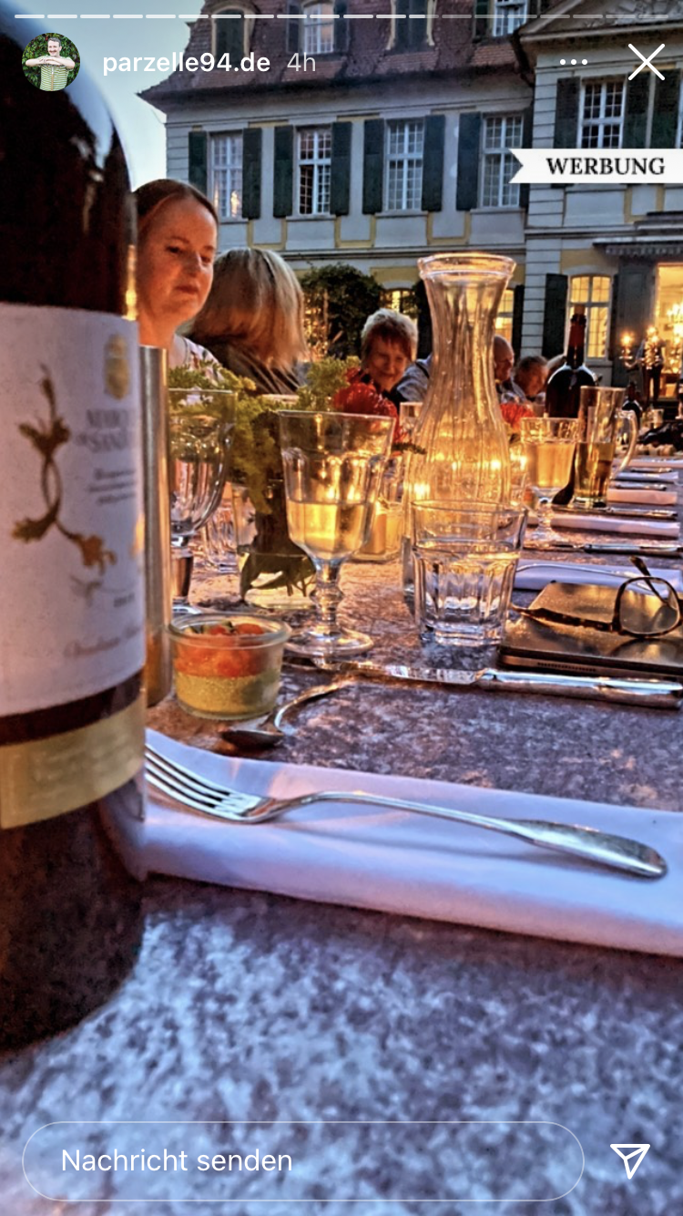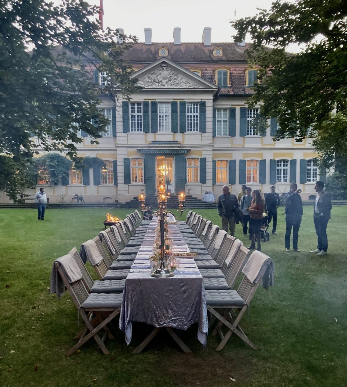 Richtig ergreifend war für mich die abendliche Tafel im Lustgarten hinter dem Schloss. Ein Wunschtraum ist für mich in Erfüllung gegangen. In einem von Kerzen und Feuerschein beleuchtetem Ambiente, mit gutem Wein und gutem Essen zu dinieren – wundervoll. Auch in anderer Hinsicht war dieses Dinner etwas Besonderes: Mein Gegenüber am Tisch war der Gartenexperte Volker Kugel. Direktor des „Blühenden Barock Ludwigsburg“, regelmäßiger Gast beim SWR mit Gartentipps und Moderator bei gruenzeug.tv – alles sehr spannend!