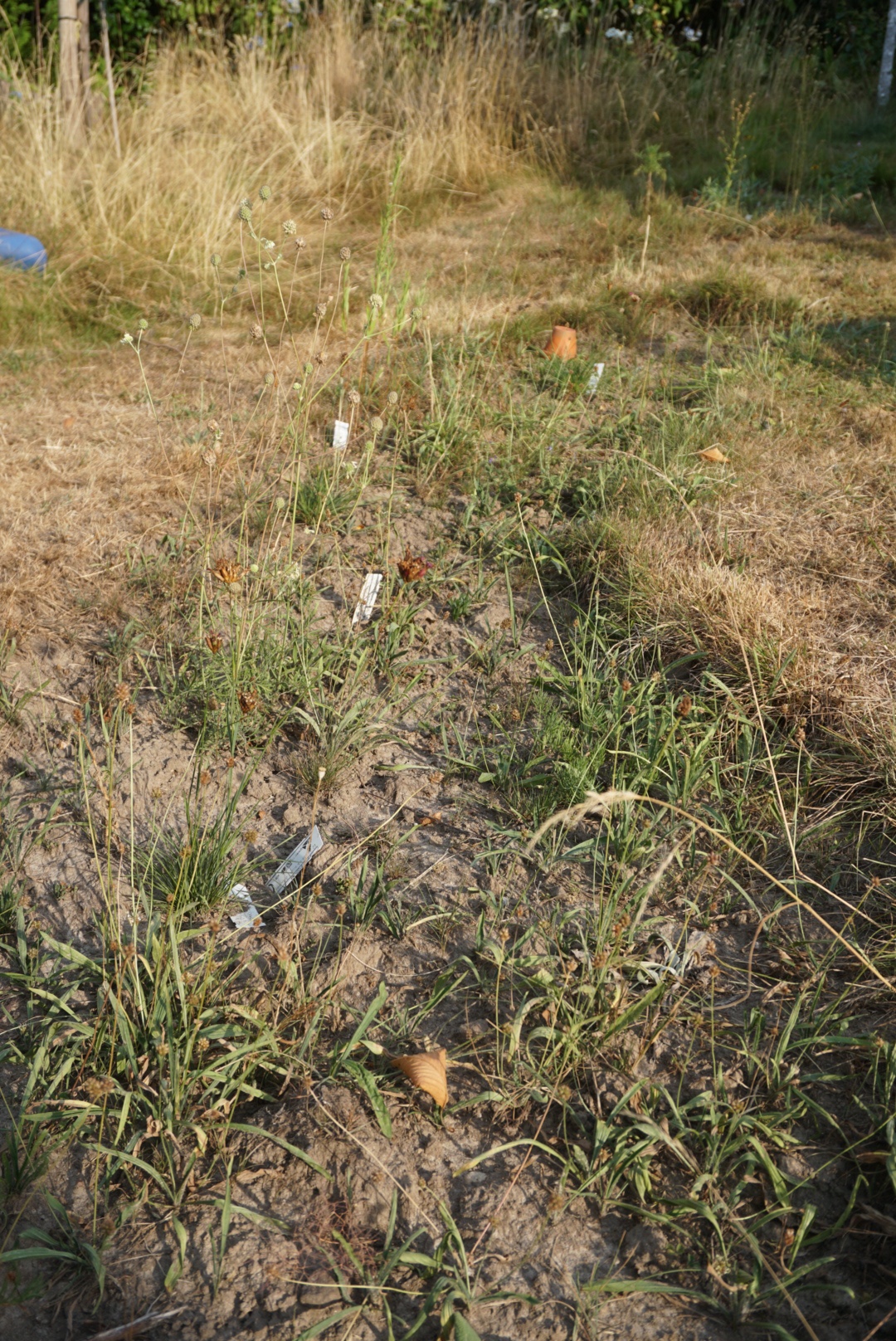 Der Rasen existiert nicht mehr, denn der wird bei uns aus Prinzip nicht bewässert. Normalerweise bewässere ich nur das Gemüse. Bäume, Sträucher und auch Stauden müssen sehen wie sie zurecht kommen. Normalerweise! Doch in diesem Jahr sind bereits Mitte Juli deutliche Stresszeichen der Trockenheit auch an Bäumen und Sträucher zu erkennen. Überall Blätter wie im Herbst und selbst der KiriKiri – ein Baum aus Tropischen Regionen – lässt die Blätter fallen. An dem Aroia Strauch hängen keine Beeren mehr. Sie sind alle unreif abgefallen. Die Pflanze kämpt ums Überleben, da gibt es keine Kraft mehr für Beeren.