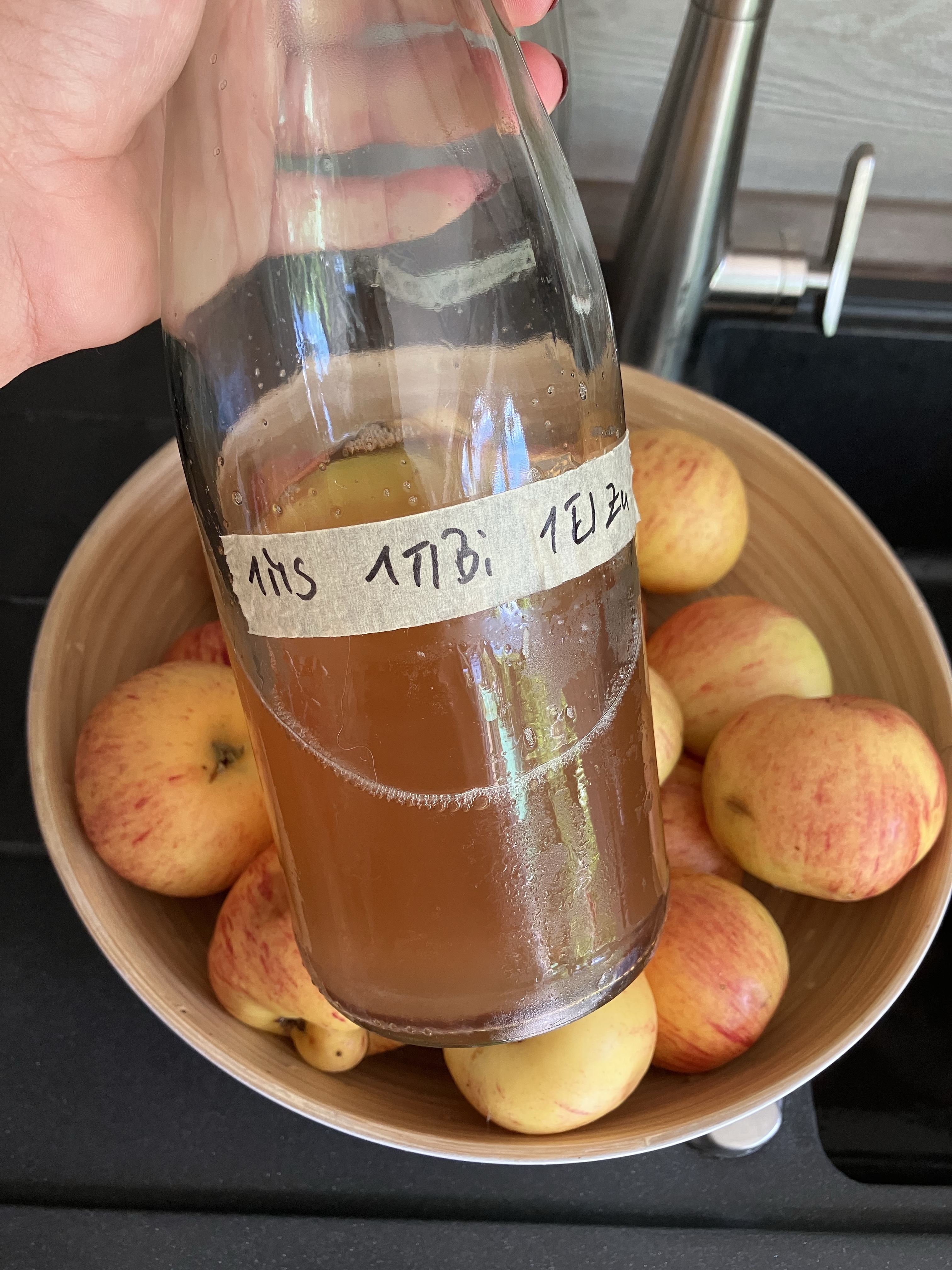- Die Flaschen bei rund 18°C aufbewahren. Ab und zu bewegen. Nach rund 2 Monaten die erste Flasche testen. Bei mir hat es 3 Monate gedauert, bis der Cider perfekt war.