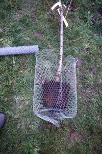 Soweit sind wir noch nicht, jetzt muss erst der Erdballen sein Fraßschutz erhalten. Ohne diesem Schutz kann ich nichts mehr pflanzen bei uns im Garten. Das Mispelbäumchen musste ich letztes Frühjahr wieder ausgraben, es sah immer kränker aus. Wie befürchtet hatten sich die Wühlmäuse gütlich an den feinen Würzelchen getan. Den Sommer über stand es dann nochmal in einem großen Pflanztopf, bevor es im Oktober – hoffentlich endgültig – in den Garten ging. Daumen drücken, dass es dem Mispelbäumchen diesmal besser ergeht.
