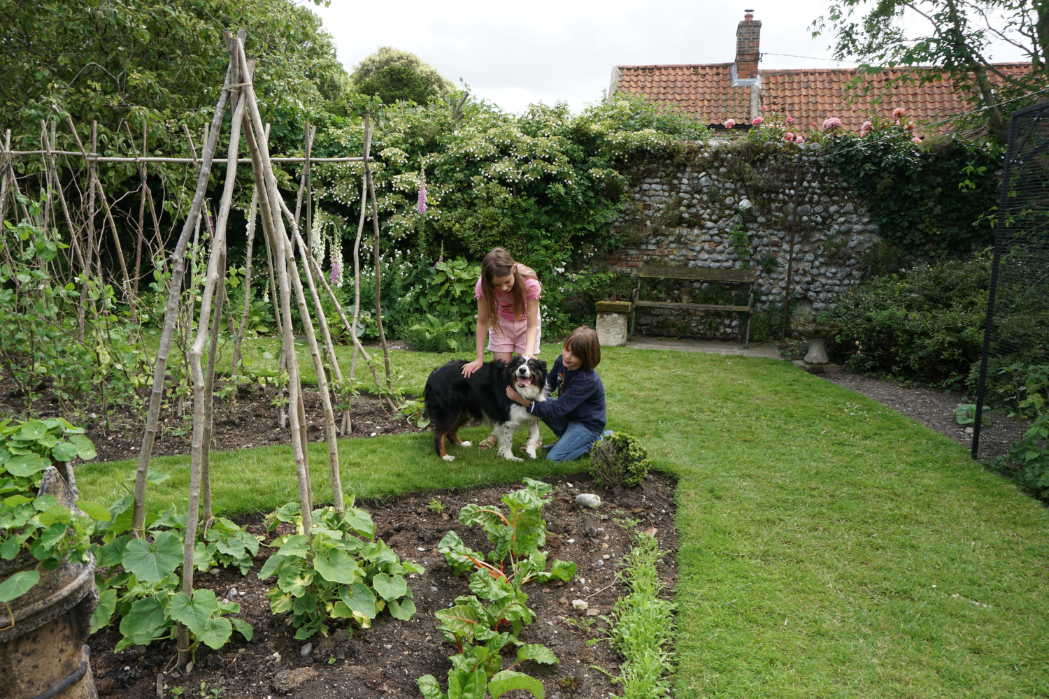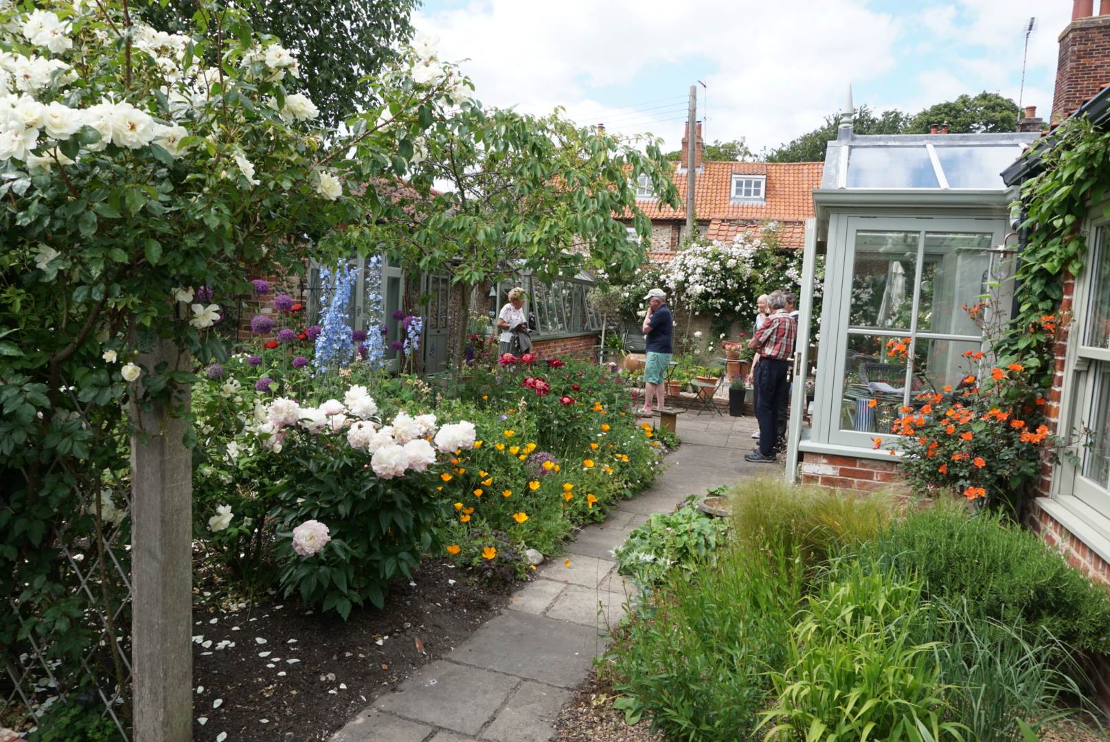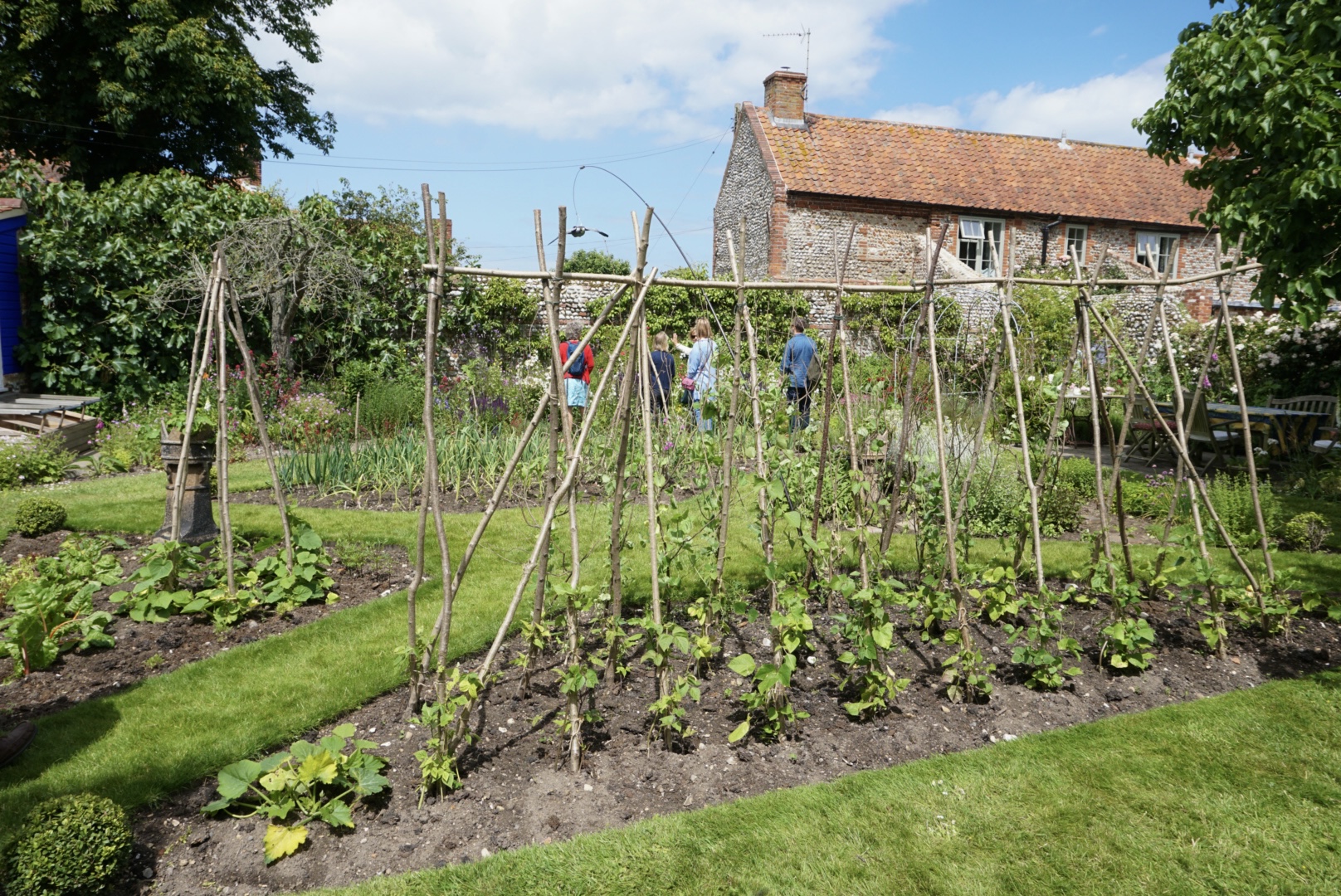 Das sieht man den schönen Häusern und gepflegten Gärten an. Und Englische Gärtnerinnen und Gärtner zeigen gerne ihre privaten Gärten. Bei jeder sich bietenden Gelegenheit werden die Gartenpforten göffnet, herum geführt und fleißig „gefachsimpelt“. Was mir persönlich am Besten gefällt: Es wurden hier auch zwei „Allotment Patches“ gezeigt. Denn auch Cley hat einen großen Allotment, also eine Kleingartenanlage. Diese Gärten fand ich als passionierte Gemüsegärtnerin natürlich spannender als die Hausgärten.