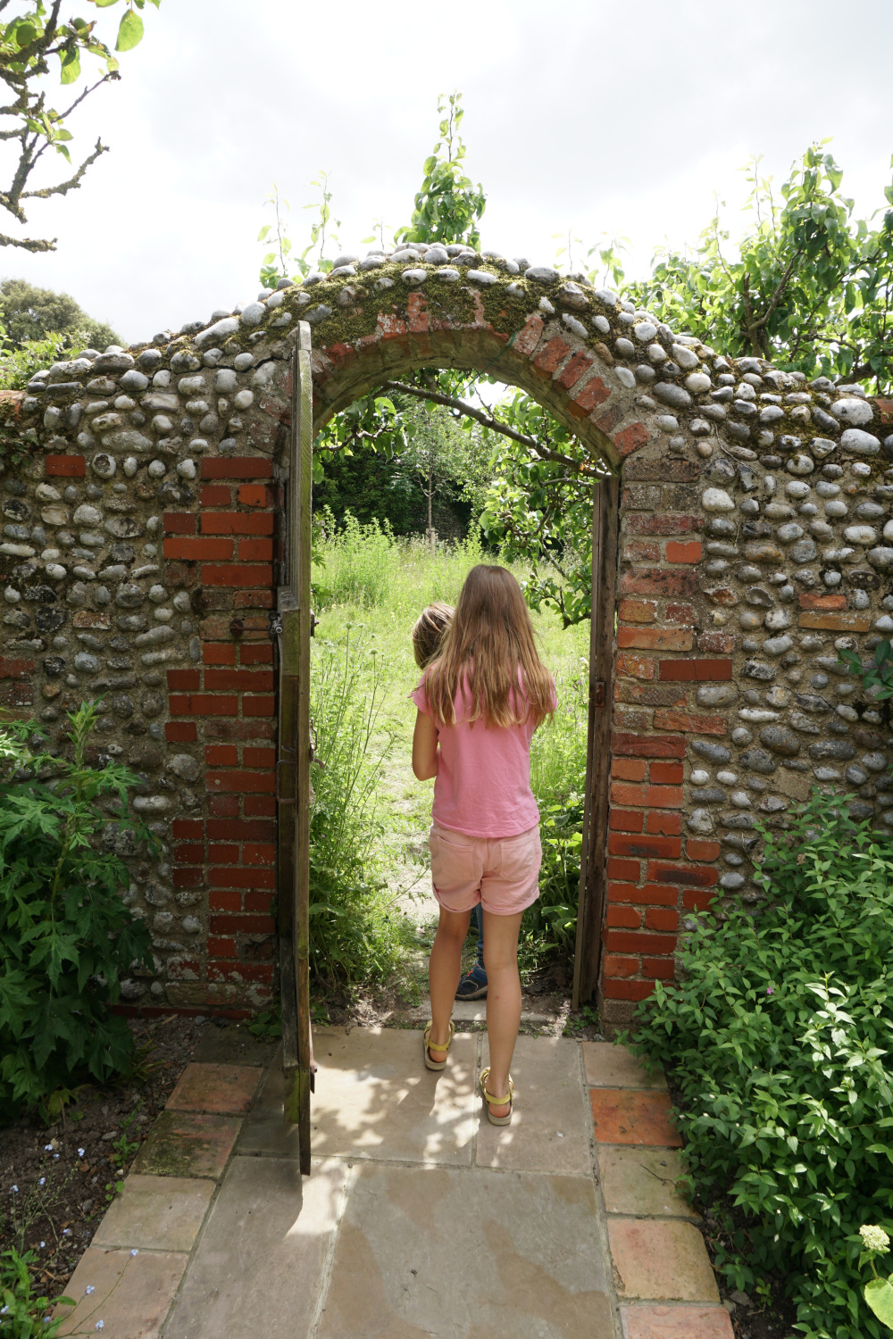 Naja, fast. Denn im schönsten Hausgarten gab es die drei Bereiche der Permakultur. Nutzgarten am Haus, rechts daneben Obstbäume mit Zierstauden und dahinter ein Bereich mit einer echten Wildblumenwiese. Nur schmale Trampelpfade waren für den Gartentag in die Wiese gemäht. Das Besondere: Alle drei Bereiche waren komplett von sehr alten Steinmauern umrahmt, sind nur durch Torbögen verbunden. Wirklich schön!