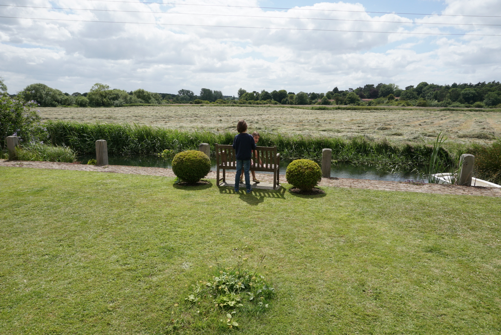 Einer der Hausgärten lag direkt an einem künstlichen Kanal, welcher früher zum „Store“ im alten Ortskern führte. Hier fuhren früher Lastkähne mit Waren aller Art vorbei. Der Hausbesitzer hatte den an seinem Grunstück angrenzenden Teil des Kanales wieder in Stand gesezt. Dadurch wird er nicht nur ein Teil des Gartens. Er öffnet auch den weiten Blick in die dahinter, westlich liegenden Gras- und Marschlandschaft. Ein wahrlich magischer Ausblick! Schade, dass ich hier keinen Sonnenuntergang erleben durfte.