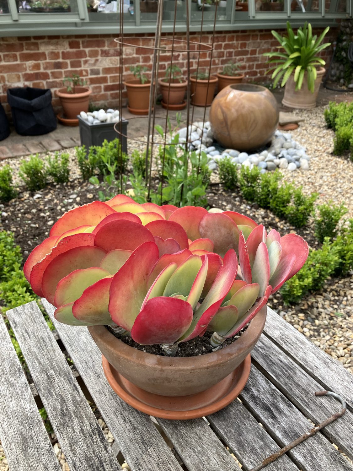 Irgend etwas Besonderes hat jeder Garten zu bieten. In einem kleinen, ebenfalls komplett ummauerten Hausgarten, fand ich die faszinierendste Pflanze des Tages. Die fleischige Succulenten mit den roten Blatträndern ist ein Wüstenkohl (Kalanchoe thyrsiflora).