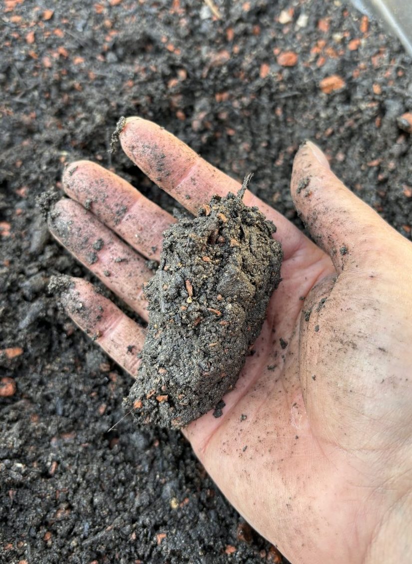 Die Bio Schwarzerde von Sonnenerde ist wirklich besonders. Das ist mir gleich beim Anheben des Erdsacks aufgefallen. Obwohl der Sack nur 20 L Schwarzerde enthält, hat er gefühlt das Gewicht eines 60 L Erdsack. Natürlich musste ich die Schwarzerde auch gleich in die Hand nehmen. Sie fühlt sich richtig gut an und ist überraschend Formstabil. Ein mit der Hand zusammen gepresstes Stück Schwarzerde fällt nicht gleich wieder auseinander. Kein Vergleich mit den Erde aus dem Baumarkt.