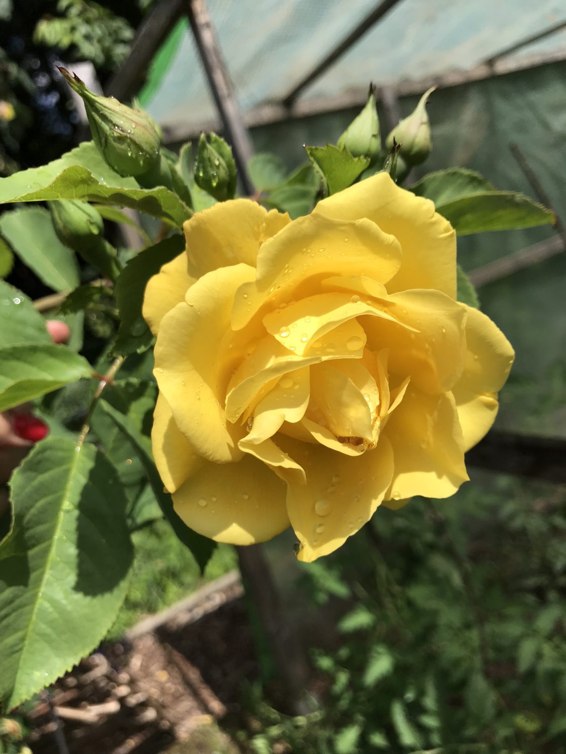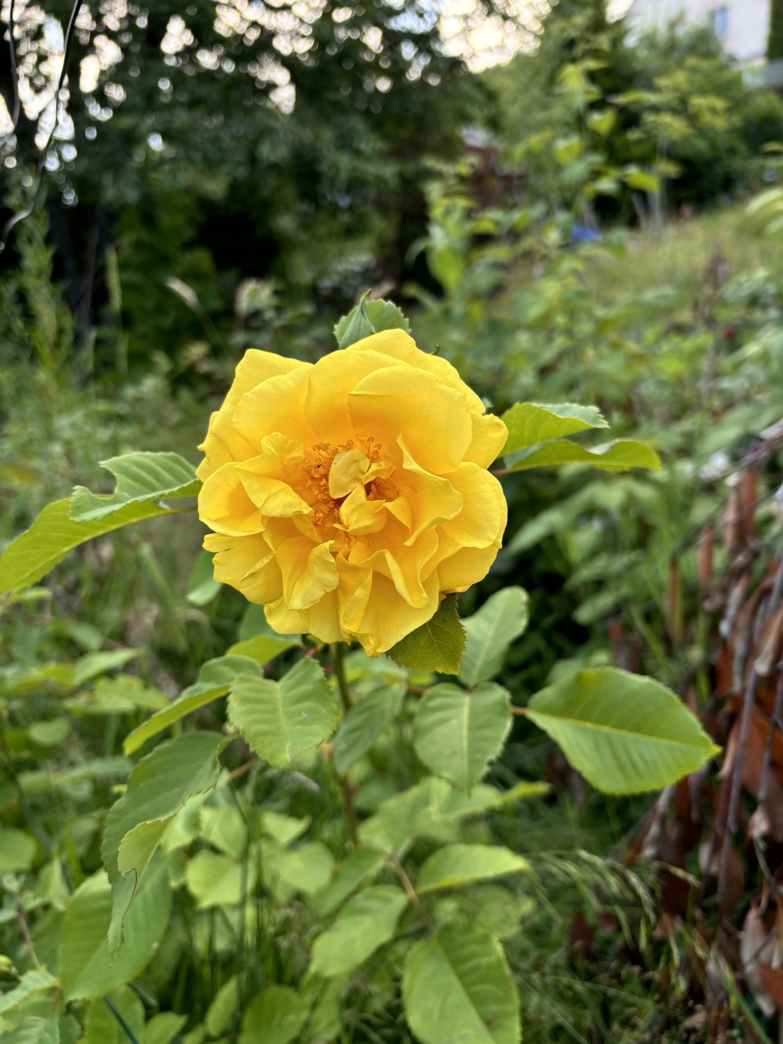 Meine erste Wahl fiel auf eine Rose, welche der gelben Rosen aus dem Kleingarten am nächsten kam. Die ebenfalls gelbe Rose „Golden Gate“ bildet im Herbst recht große Hagebutten. Allerdings hat sie einen leichten Duft. Das und die dicken Hagebutten lassen mich über die Gelbe Blütenfarbe hinweg sehen. Sie sitz im oberen Teil des Hausgarten und darf dort vor sich hin wuchern.