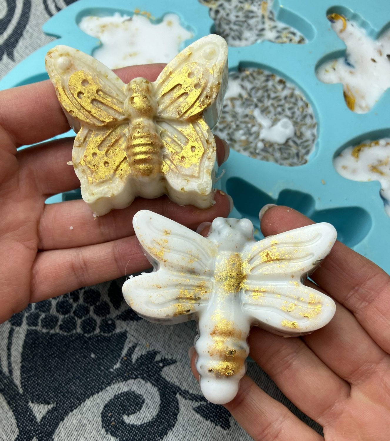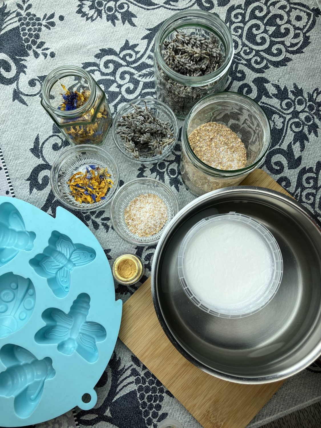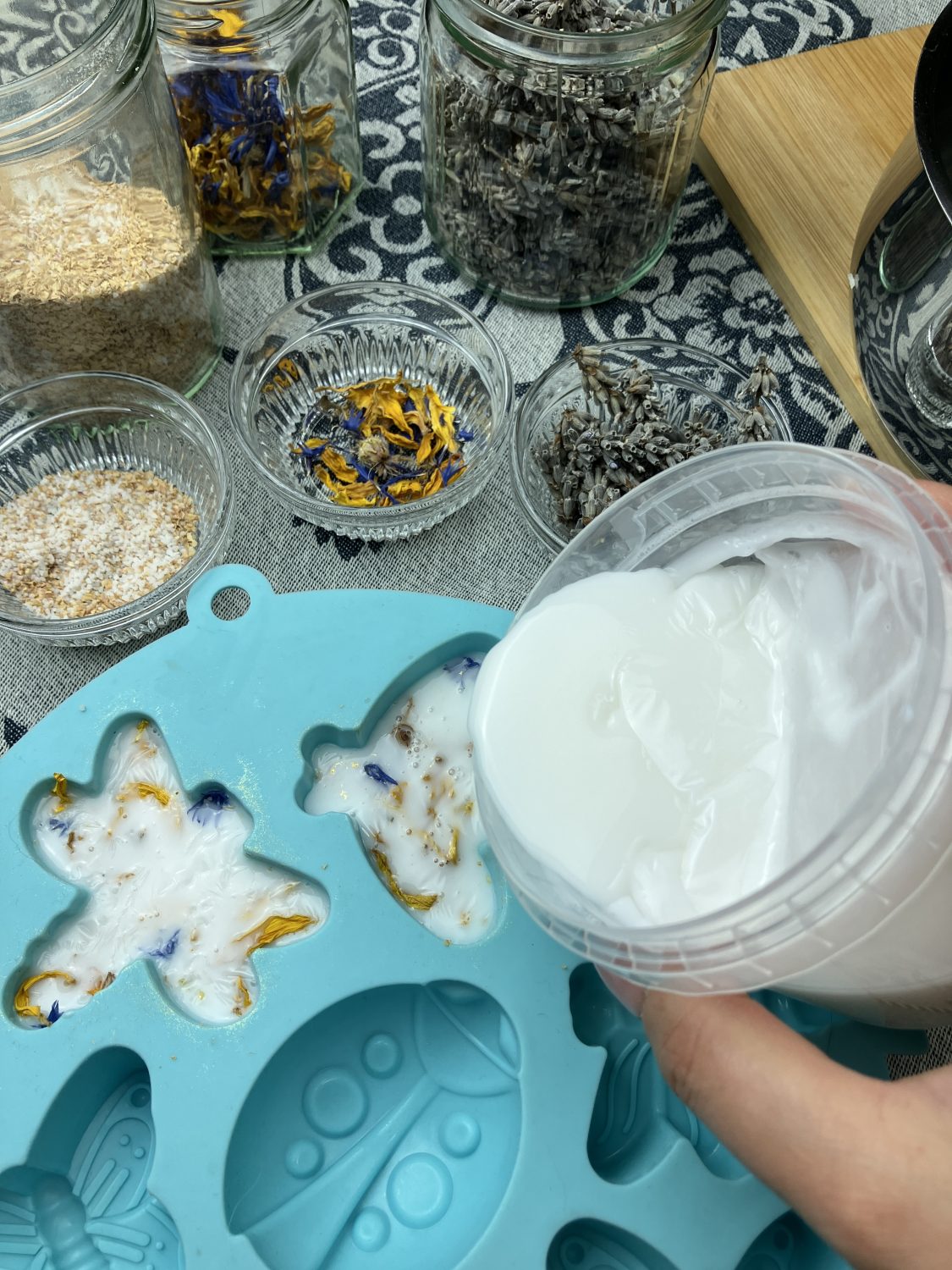 Seit 2022 mache ich das gerne auch in Form von selbst gegossenen Seifen. Das Kochen der eigentlichen Seife spare ich mir allerdings. Bestandteile, wie der Ätznatron, halten mich derzeit noch davon ab. Auch ist es eine hohe Kunst richtig Seife zu kochen. Ich mag es stressfrei, deshalb verwende ich gebrauchsfertige Seifen. Mit diesen Seifen kann ich meiner Kreativität freien Lauf lassen.