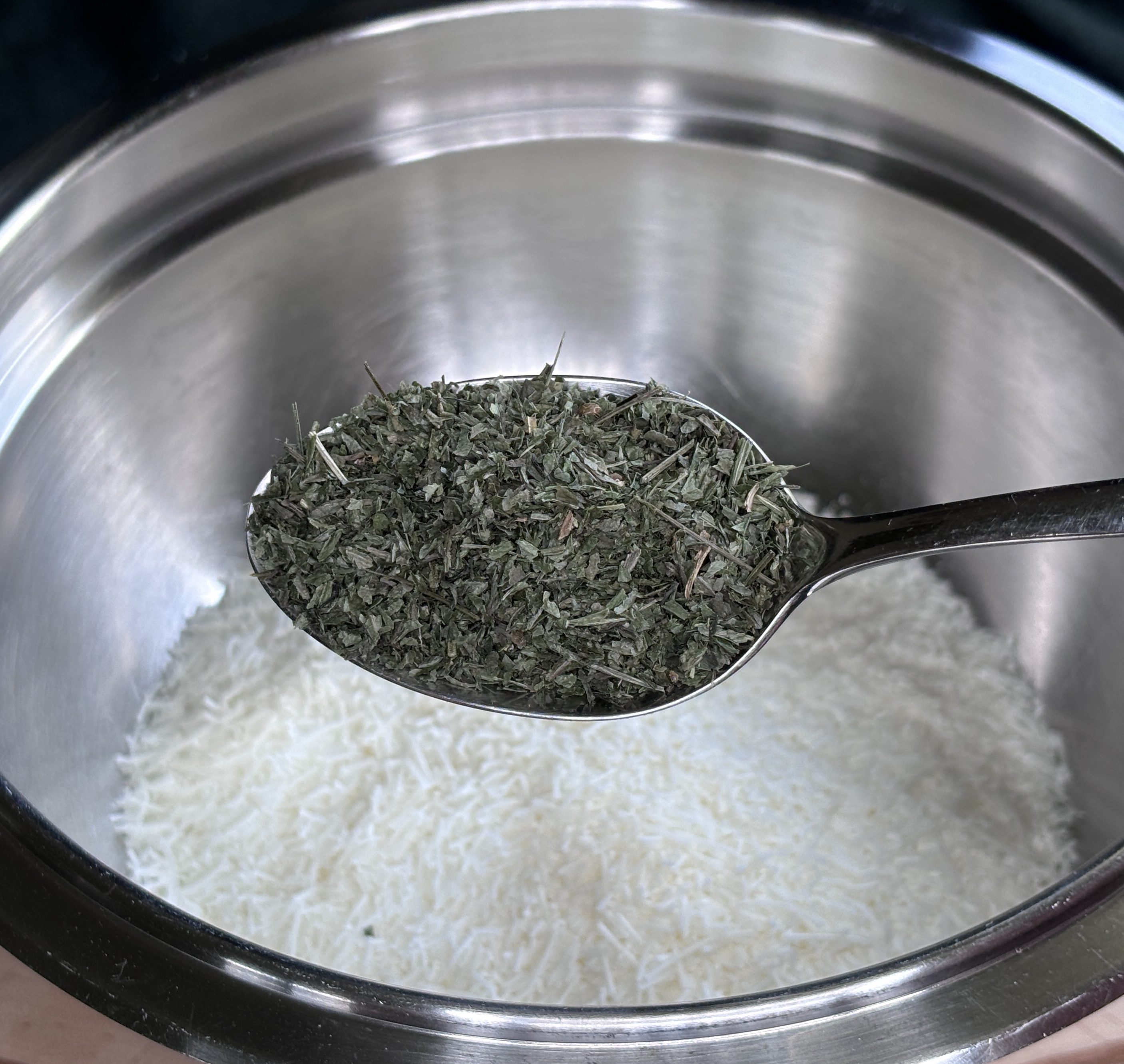 - Die Kräuter sollten wirklich gut getrocknet sein. Dann fein mahlen oder mörsern.