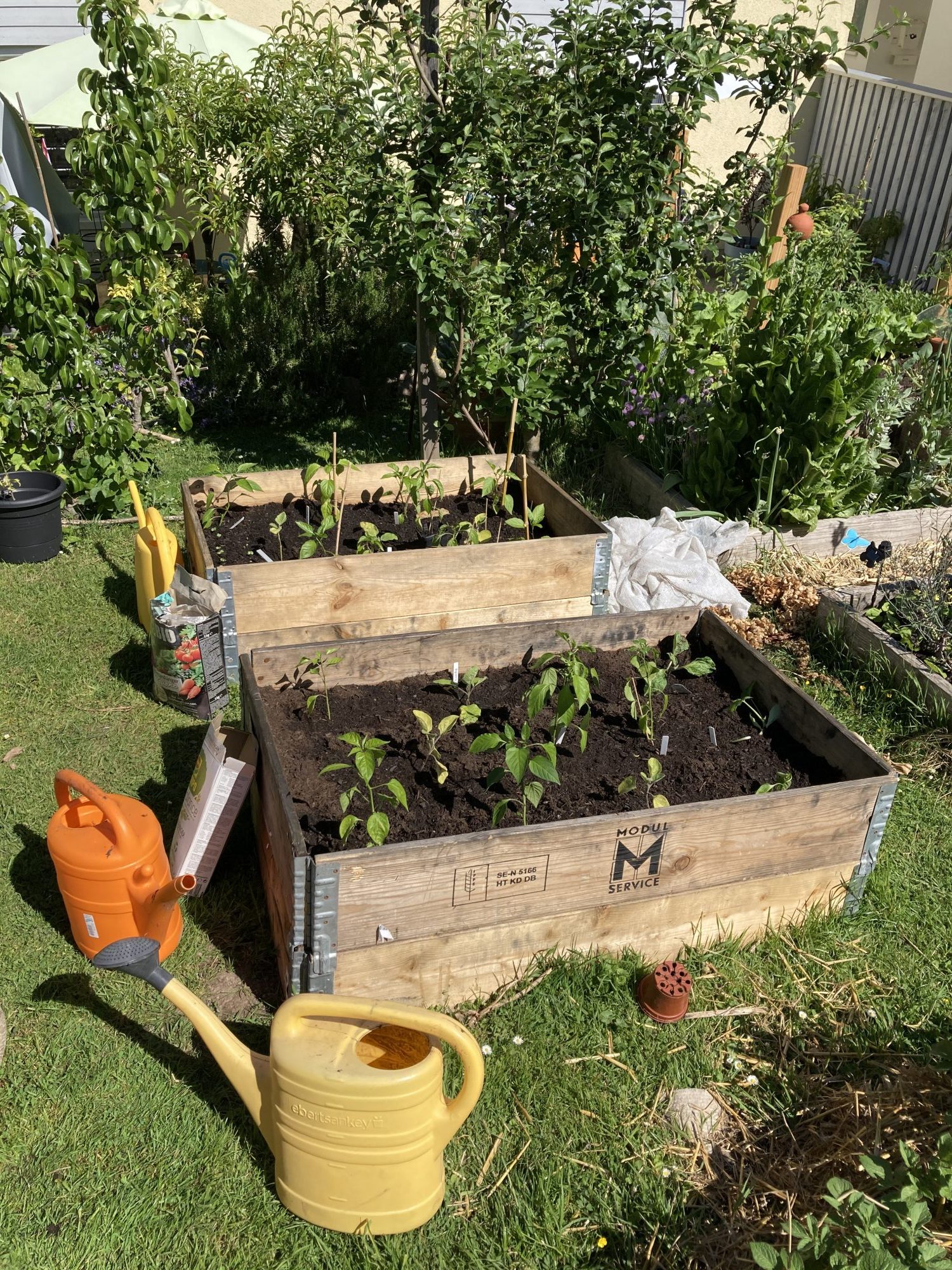 Im Laufe der Gartenjahre sind in den beiden Palettenbeeten wirkich viel gewachsen. Aber mal ehrlich: Es kann nie genug Anbaufläche geben.