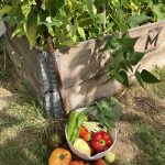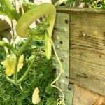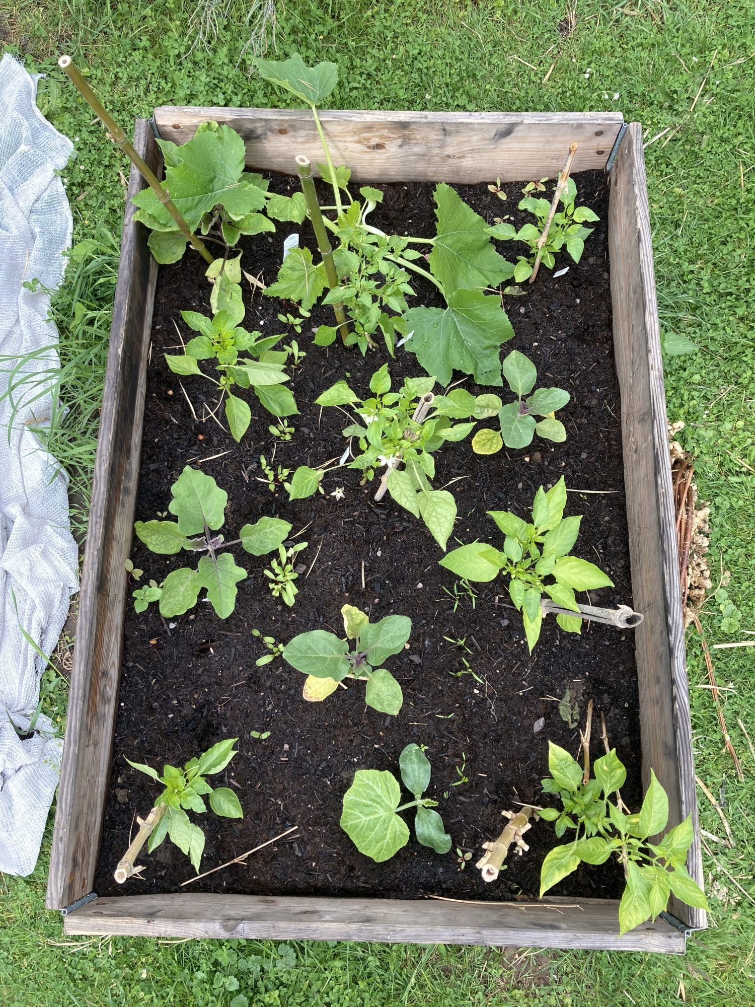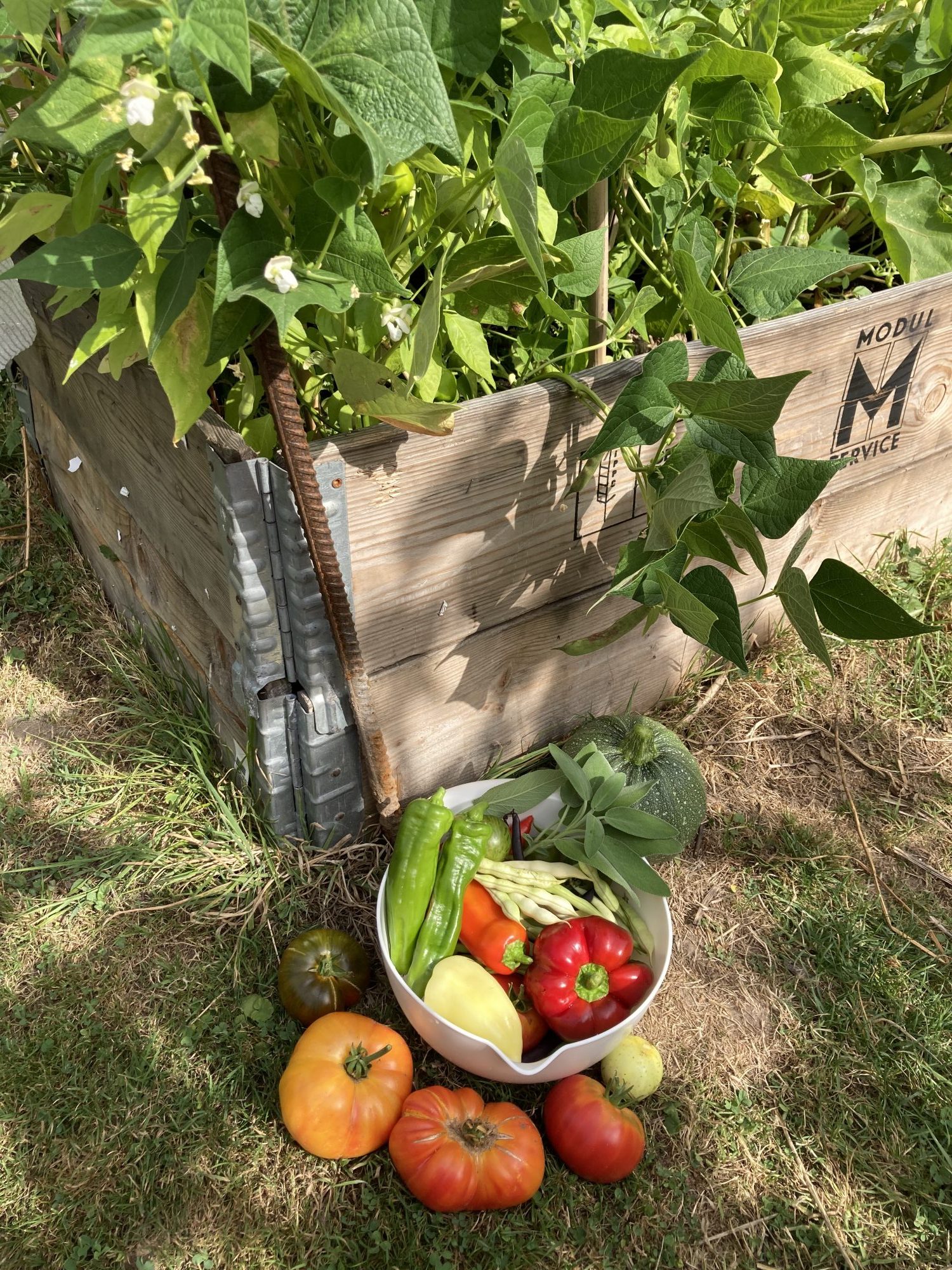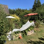 Ende April kommen die ersten Gemüsepflanzen in die beiden Hochbeet. Die selbst vorgezogenen Paprika, Chili, Aubergine werden gepflanzt. Dazu noch zwei Zucchinipflanzen bzw. Courgette – immer am kurzen Ende der Hochbeete. Hier könne die Zucchini dann herunter ranken. Die Pflanzen sind gut gewachsen, doch die Fruchtbildung war nicht sehr groß. Die anhaltende Trockenheit hat den Ernteerfolg etwas geschmälert bei Paprika und Aubergine. Dafür sind Zucchini und Chili fleißig gewesen.
