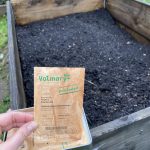 Die frische Pflanzerde kann auch erst kurz vor der Aussaat bzw. Pflanzung eingebracht werden. Sowohl der Kompost, wie auch die frische Pflanzerde werte ich noch auf mit etwas organischem Dünger, Urgesteinsmehl und einem Bodenaktivator.