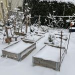 Jetzt stehen die Palettenrahmen-Hochbeete ja bereits ein Jahr im Garten. Anhaltender Regen und die derzeit ordentliche Schneemenge lösen das Trockenheitsprobelm. Gerade der Schnee bringt Feuchtigkeit in den Boden, welche beim Tauen langsam einsickern kann. Bereits Mitte Dezember habe ich die Hochbeete mit frischem Kompost und weiterer Gartenerde aufgefüllt. Die Kälte und der Schnee befördert die Bodengare. Ich bin mir sicher, im nächsten Sommer wird hier alles noch besser wachsen.