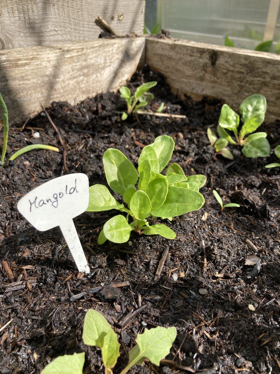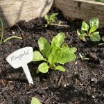 Zwischen die beiden Reihen Eiszapfen säe ich Spargelsalat an, sobald sich der Schnee und die Eiseskälte verzogen haben. Es sollen noch weitere Salatpflanzen einziehen, wie zum Beispiel der Teufelsohr. Den ziehe ich in dem Gewächshausschrank auf der Terrasse vor. Dort ist er Schneckensicher und vor drohendem Frost geschützt. Zwischen Spargelsalat und Teufelsohr säe ich noch Mangold ein. Der wird später vereinzelt, dann er darf nicht zu dicht stehen.