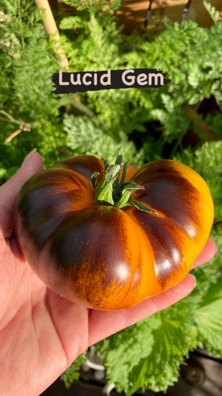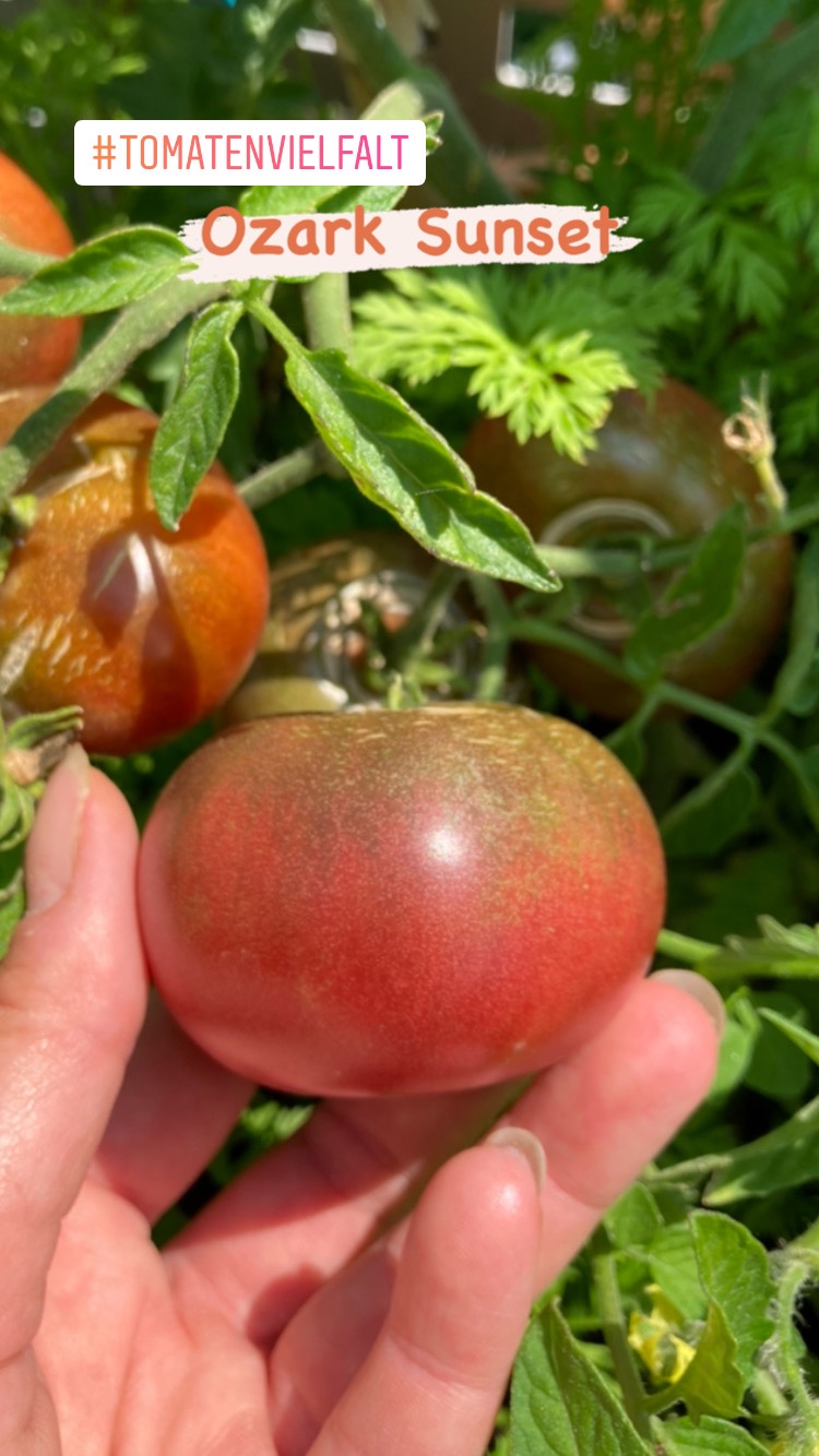 Geschmacklich liegen bei mir drei Sorten auf Platz 1. Die Cocktailtomate „Pink Bumblebee“, sehr süß und unglaublich lecker. Bei den – etwas kleineren – Fleischtomaten sind es die „Lucid Gem“ und „Ozark Sunset“. Letztere ist auch eine sehr wuchs freudige und gesunde Tomate. Die Lucid ist etwas empfindlich, sie mag es nicht zu kalt, trocken oder feucht. Aber der höhere Aufwand lohnt sich.